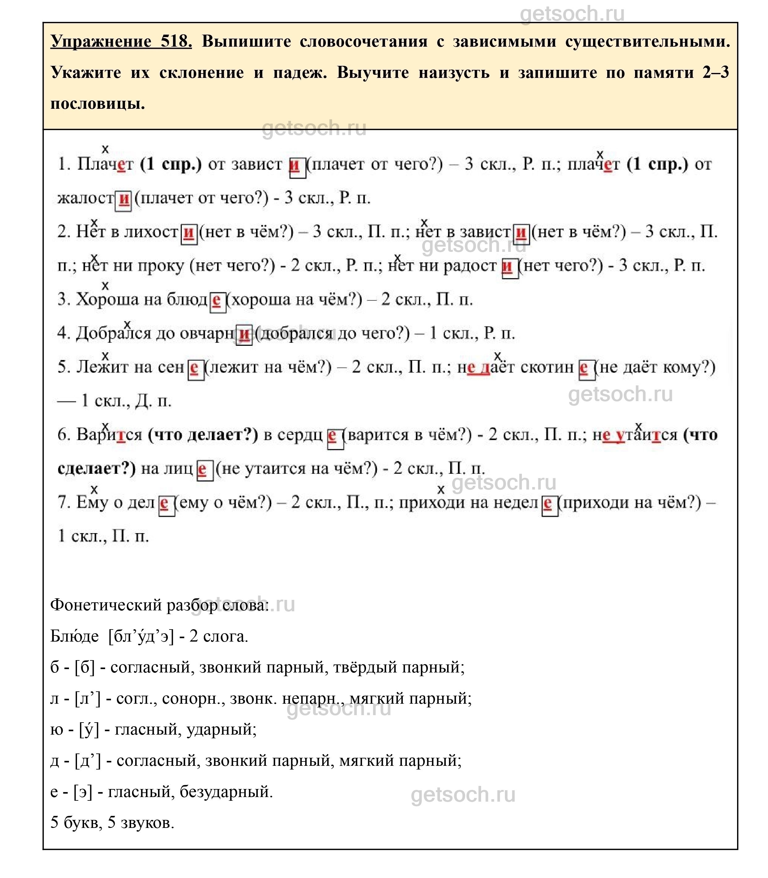 Рассмотрим ответы на Упражнение 518 из учебника по русскому языку для 5 класса Ладыженская