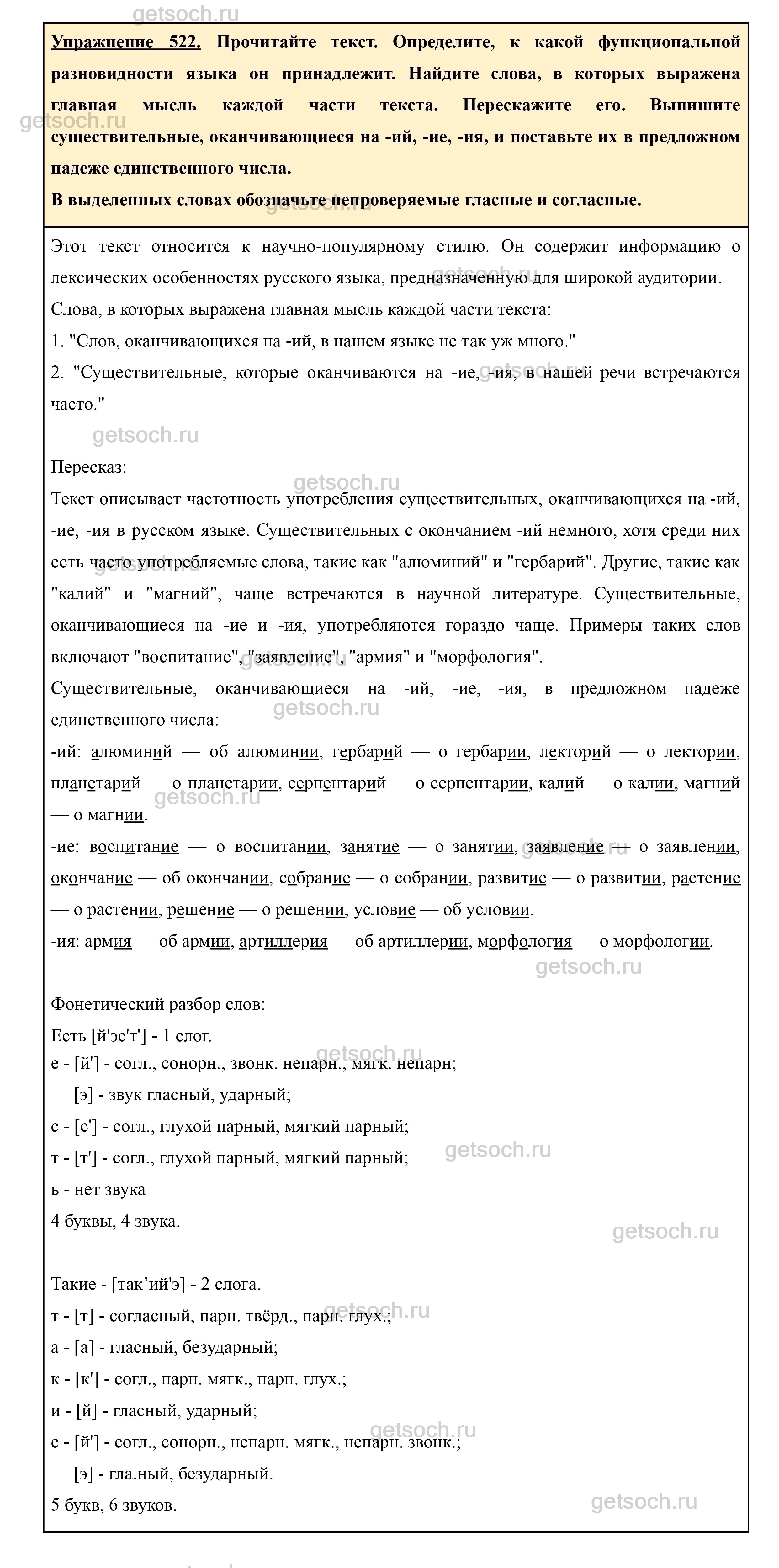 Рассмотрим ответы на Упражнение 522 из учебника по русскому языку для 5 класса Ладыженская