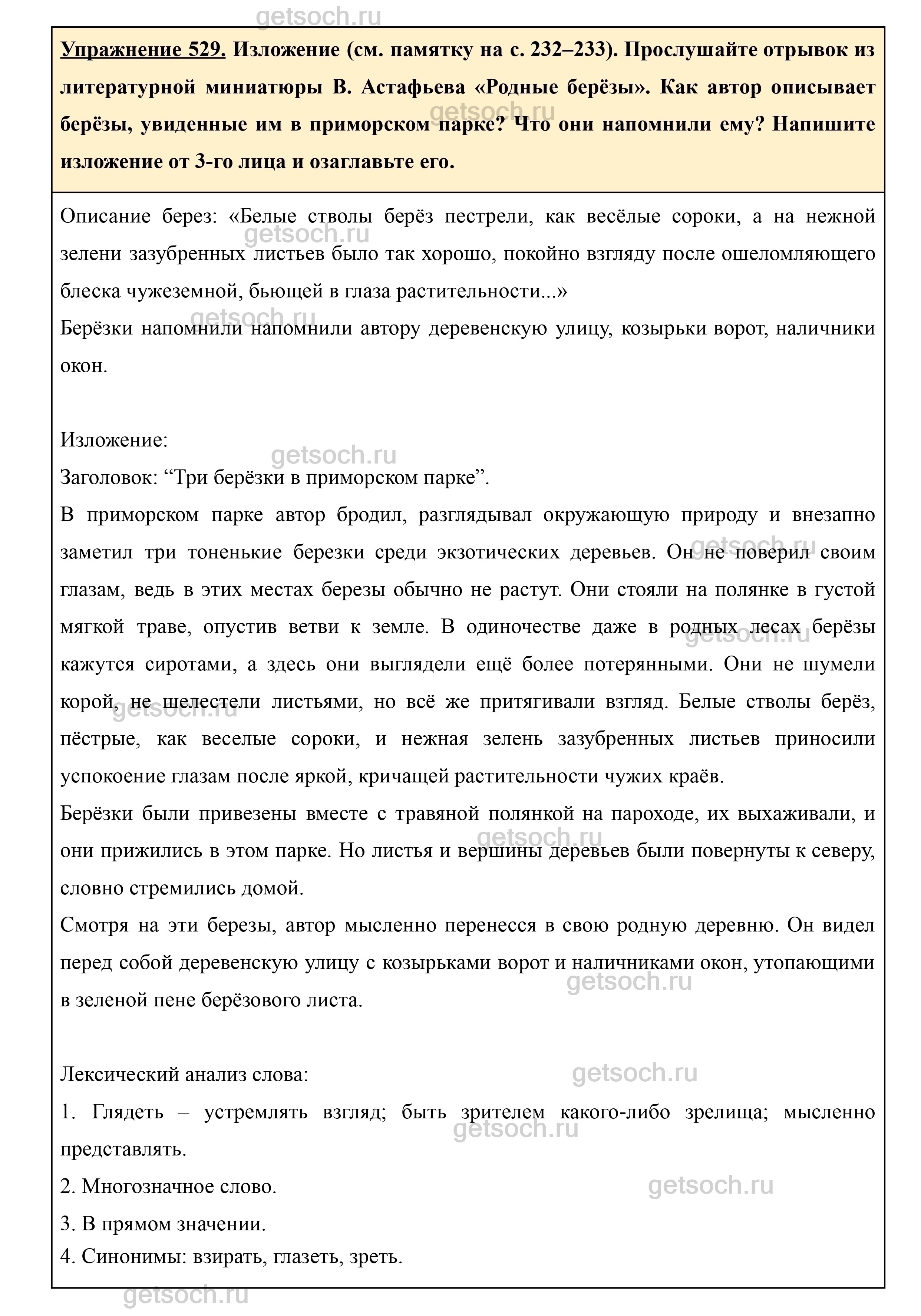 Рассмотрим ответы на Упражнение 529 из учебника по русскому языку для 5 класса Ладыженская