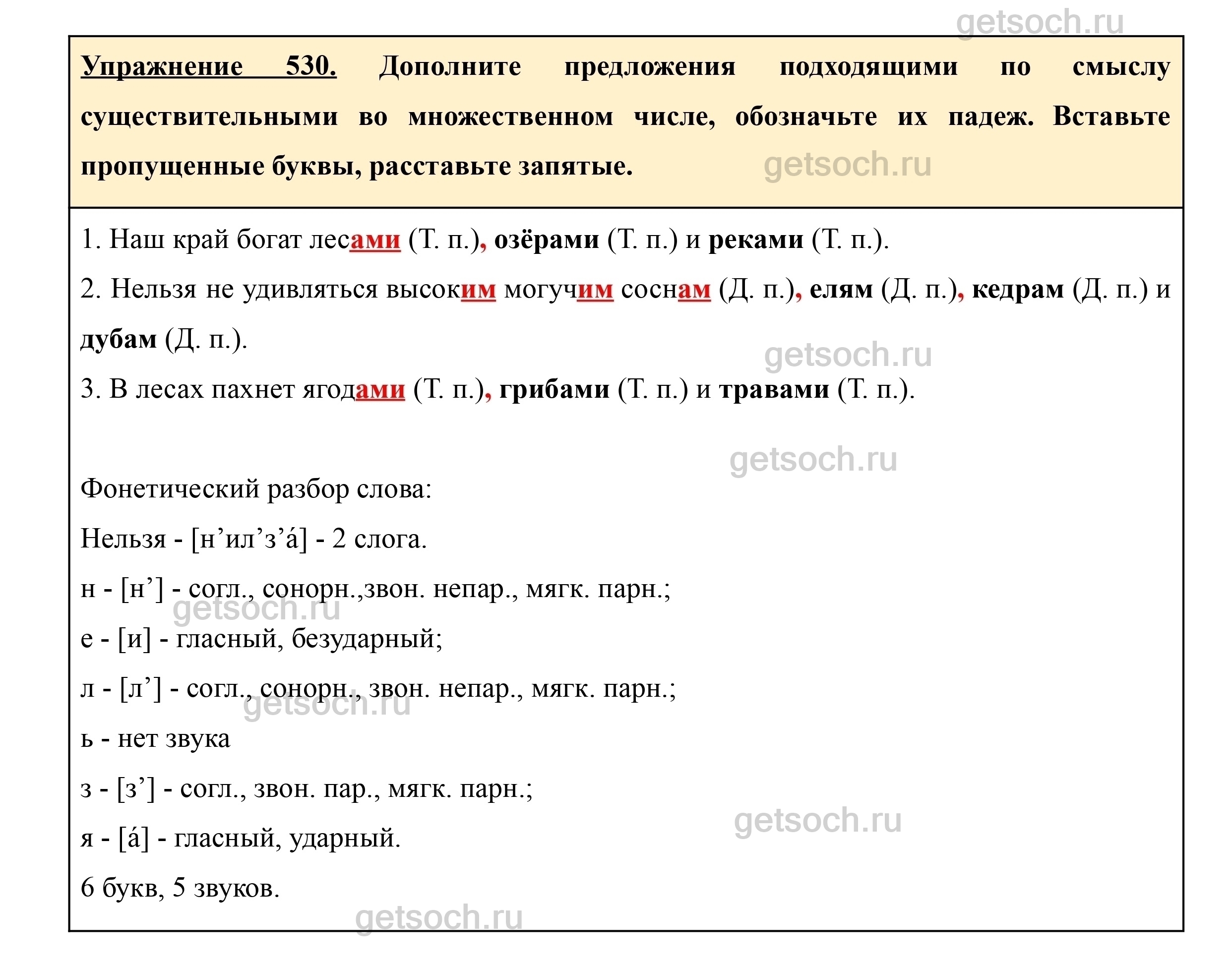 Рассмотрим ответы на Упражнение 530 из учебника по русскому языку для 5 класса Ладыженская