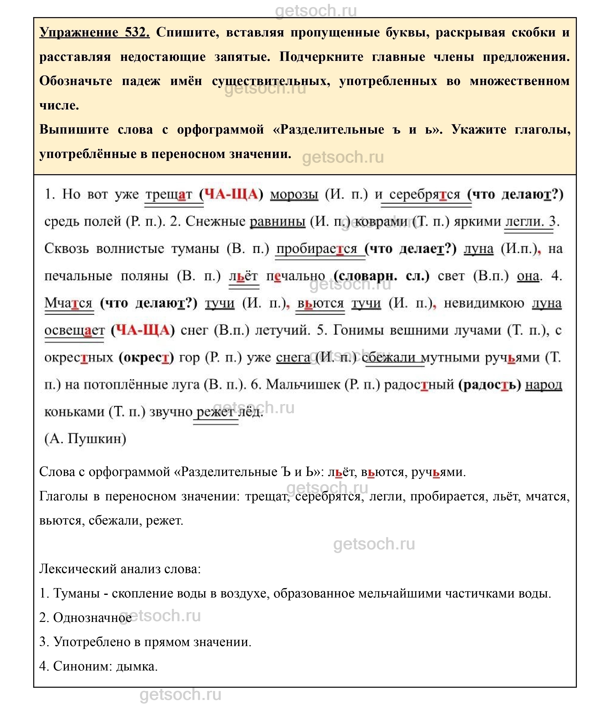 Рассмотрим ответы на Упражнение 532 из учебника по русскому языку для 5 класса Ладыженская