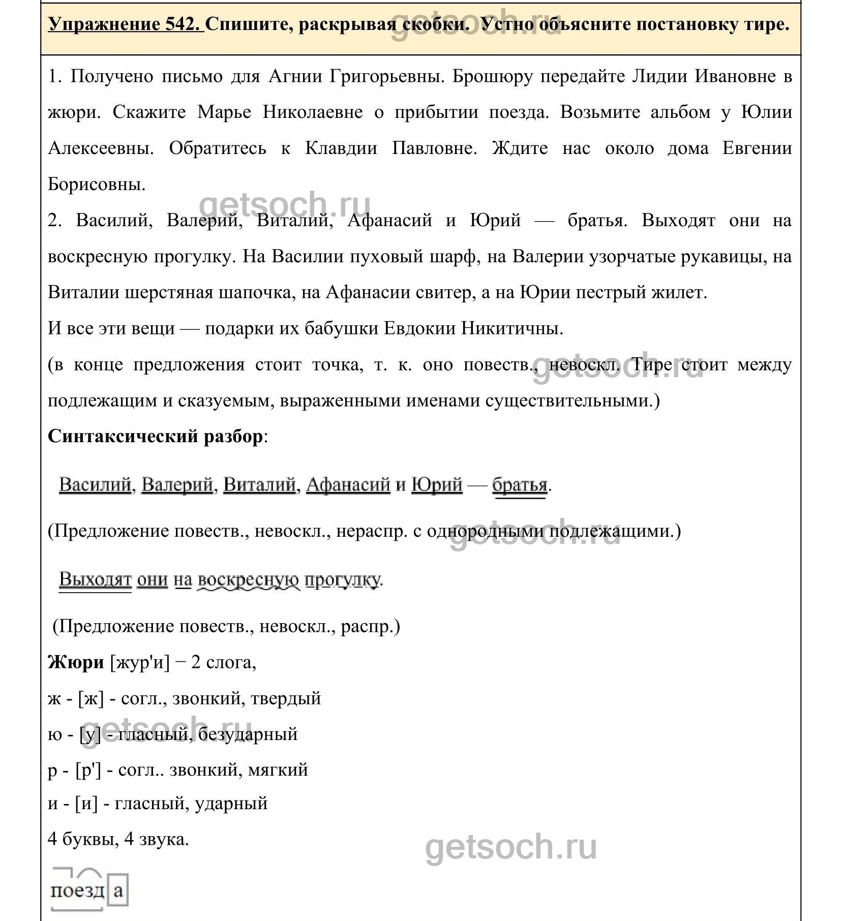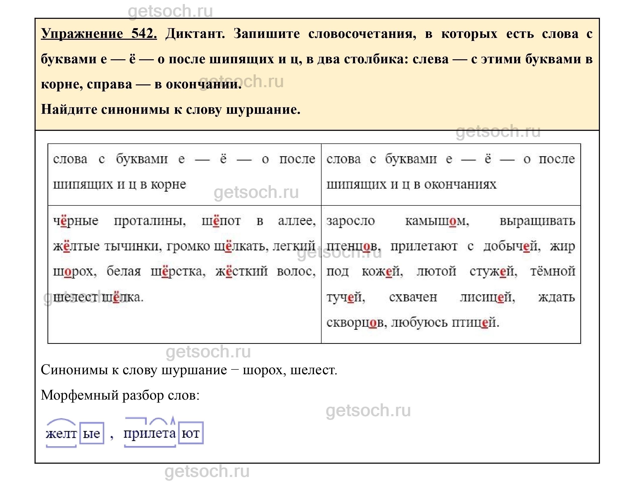Рассмотрим ответы на Упражнение 542 из учебника по русскому языку для 5 класса Ладыженская