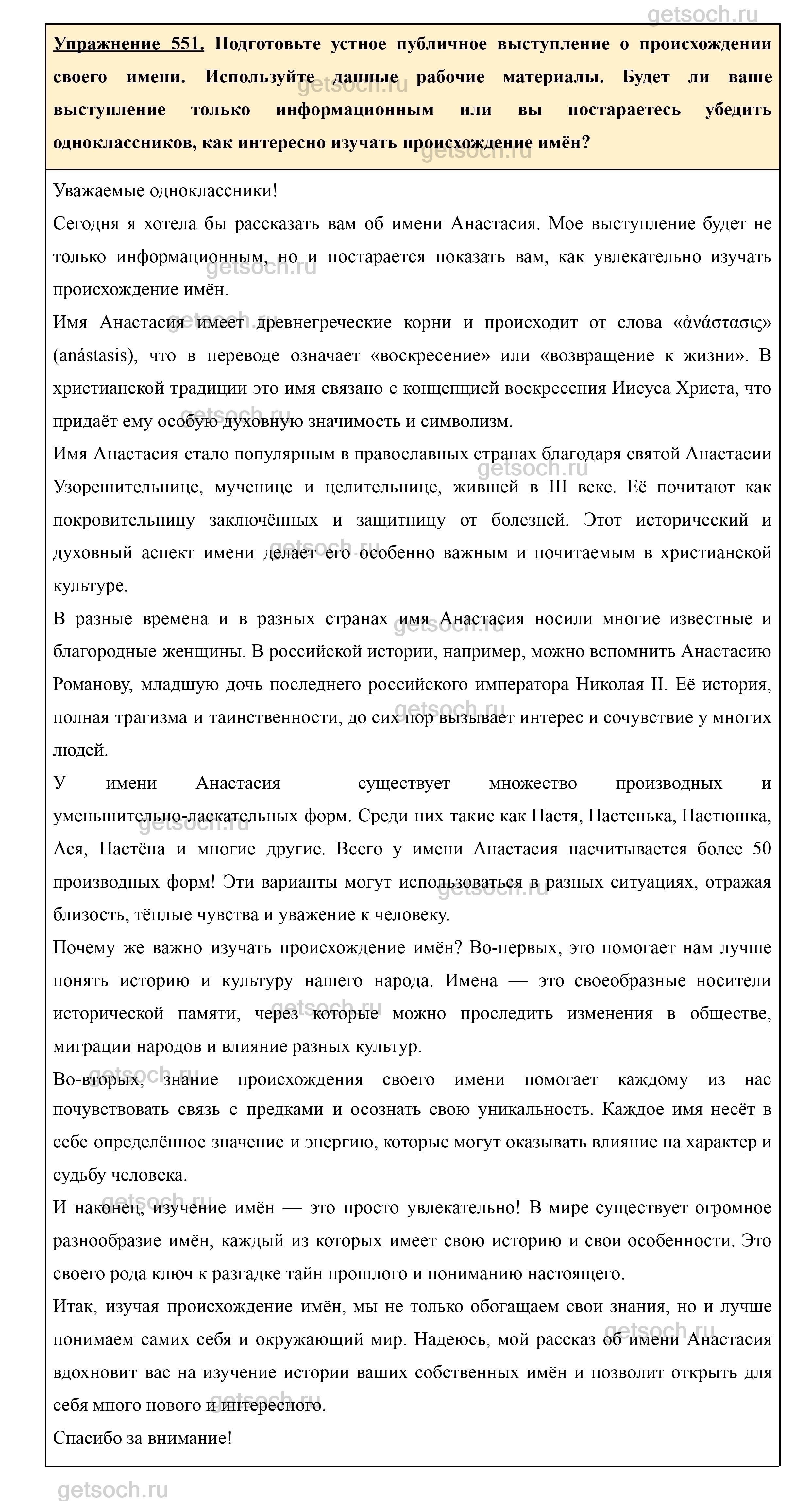 Рассмотрим ответы на Упражнение 551 из учебника по русскому языку для 5 класса Ладыженская