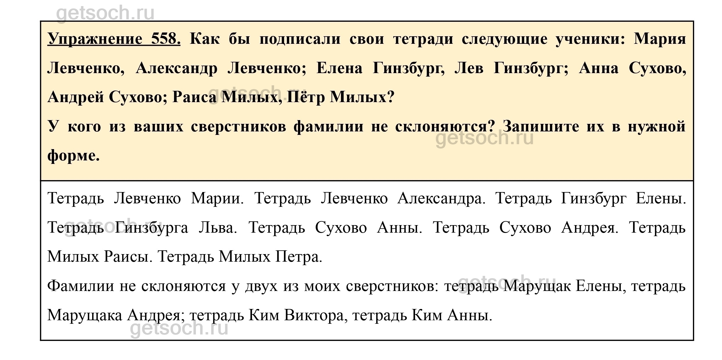 Рассмотрим ответы на Упражнение 558 из учебника по русскому языку для 5 класса Ладыженская