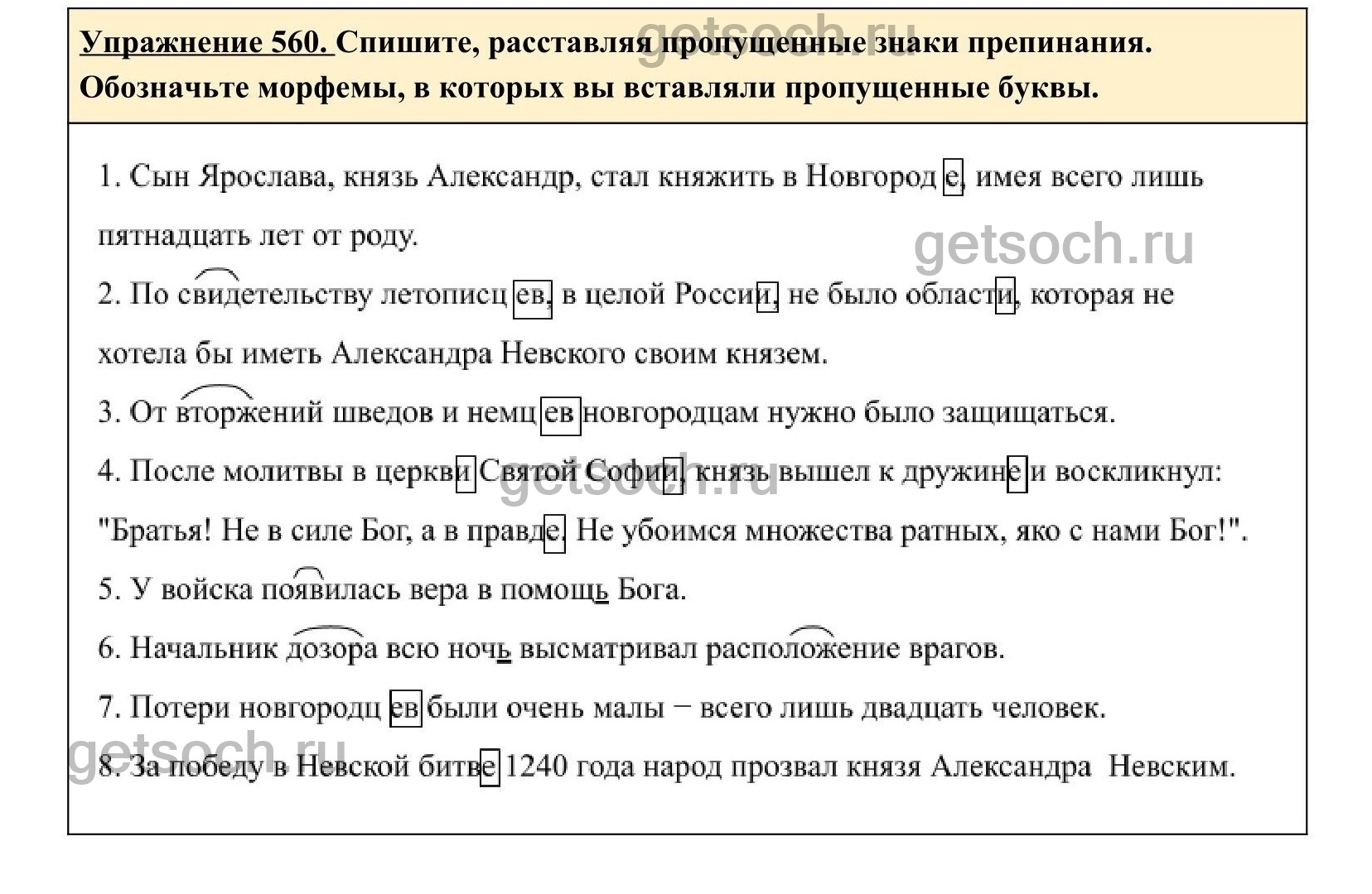 Рассмотрим ответы на Упражнение 560 из учебника по русскому языку для 5 класса Ладыженская