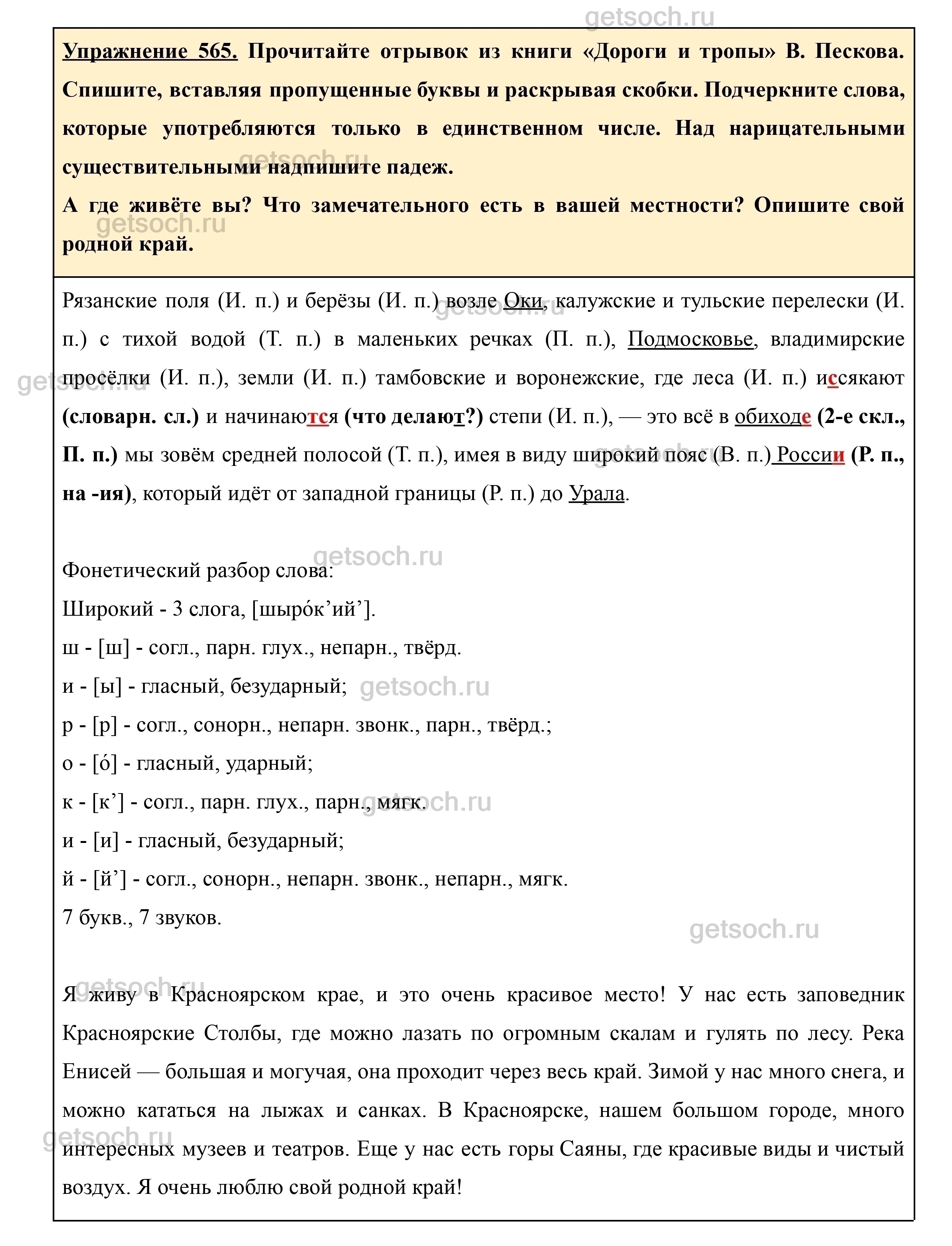 Рассмотрим ответы на Упражнение 565 из учебника по русскому языку для 5 класса Ладыженская