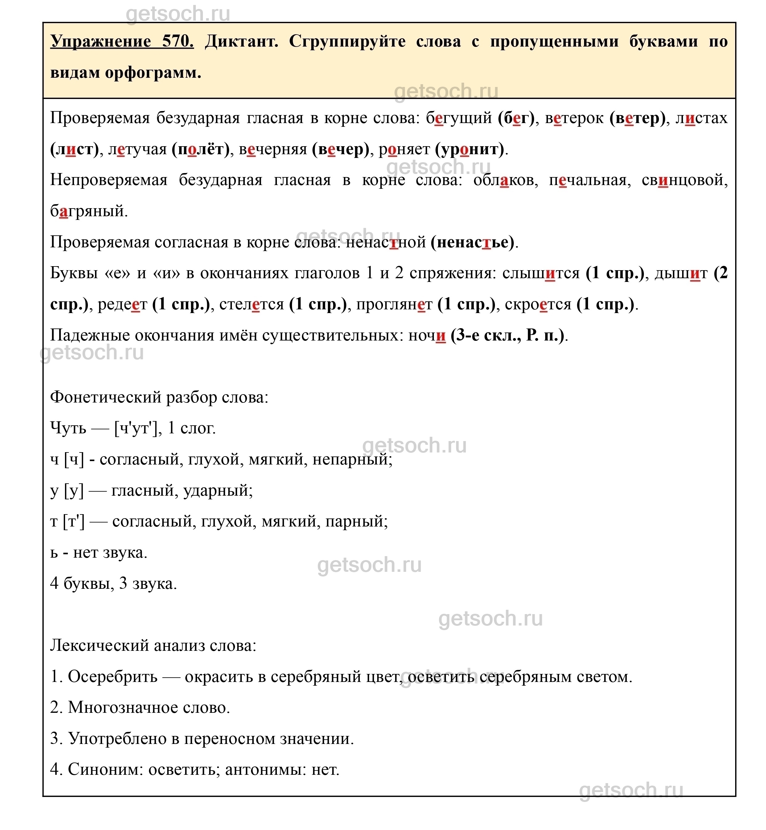 Рассмотрим ответы на Упражнение 570 из учебника по русскому языку для 5 класса Ладыженская
