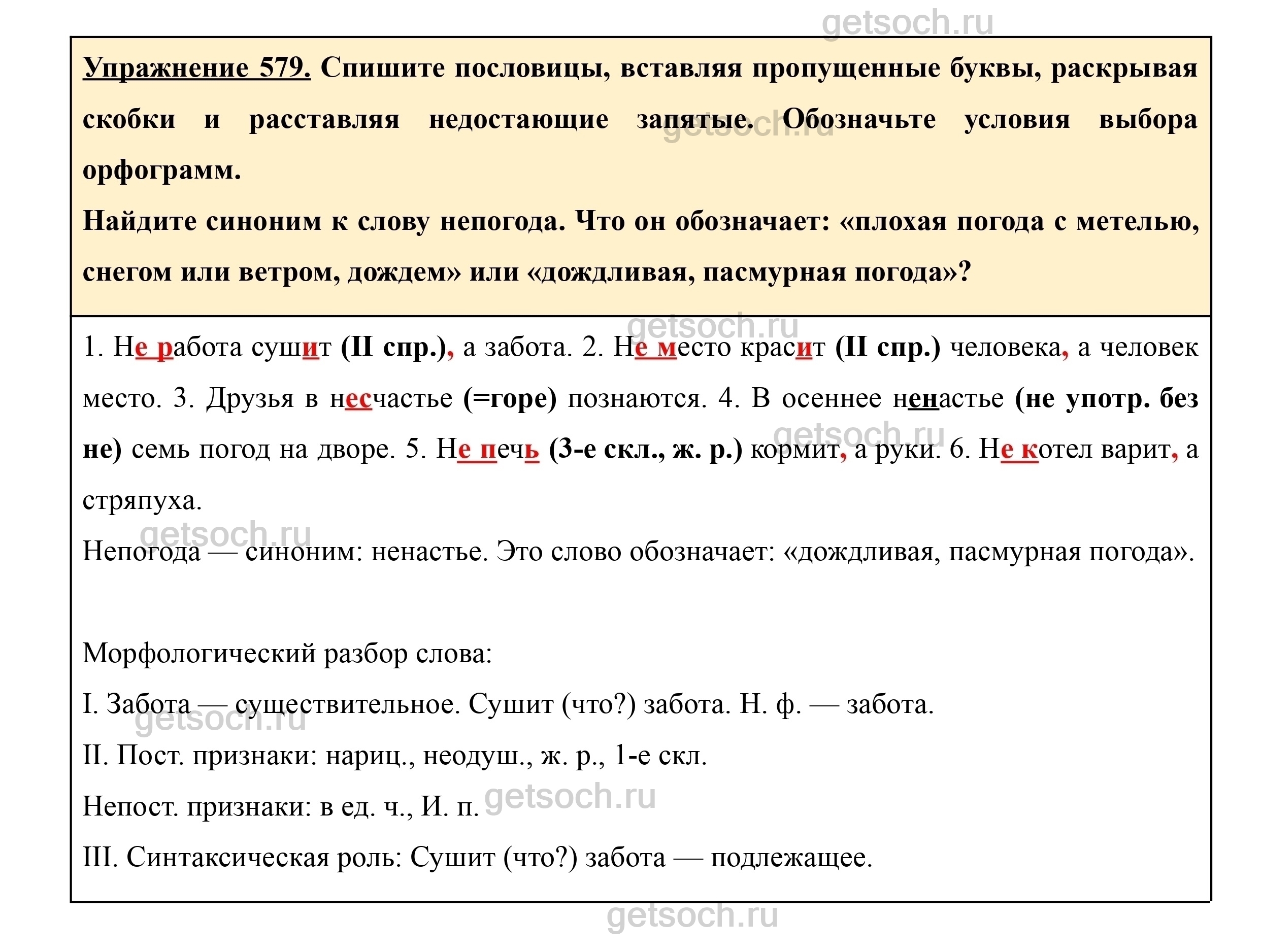Рассмотрим ответы на Упражнение 579 из учебника по русскому языку для 5 класса Ладыженская