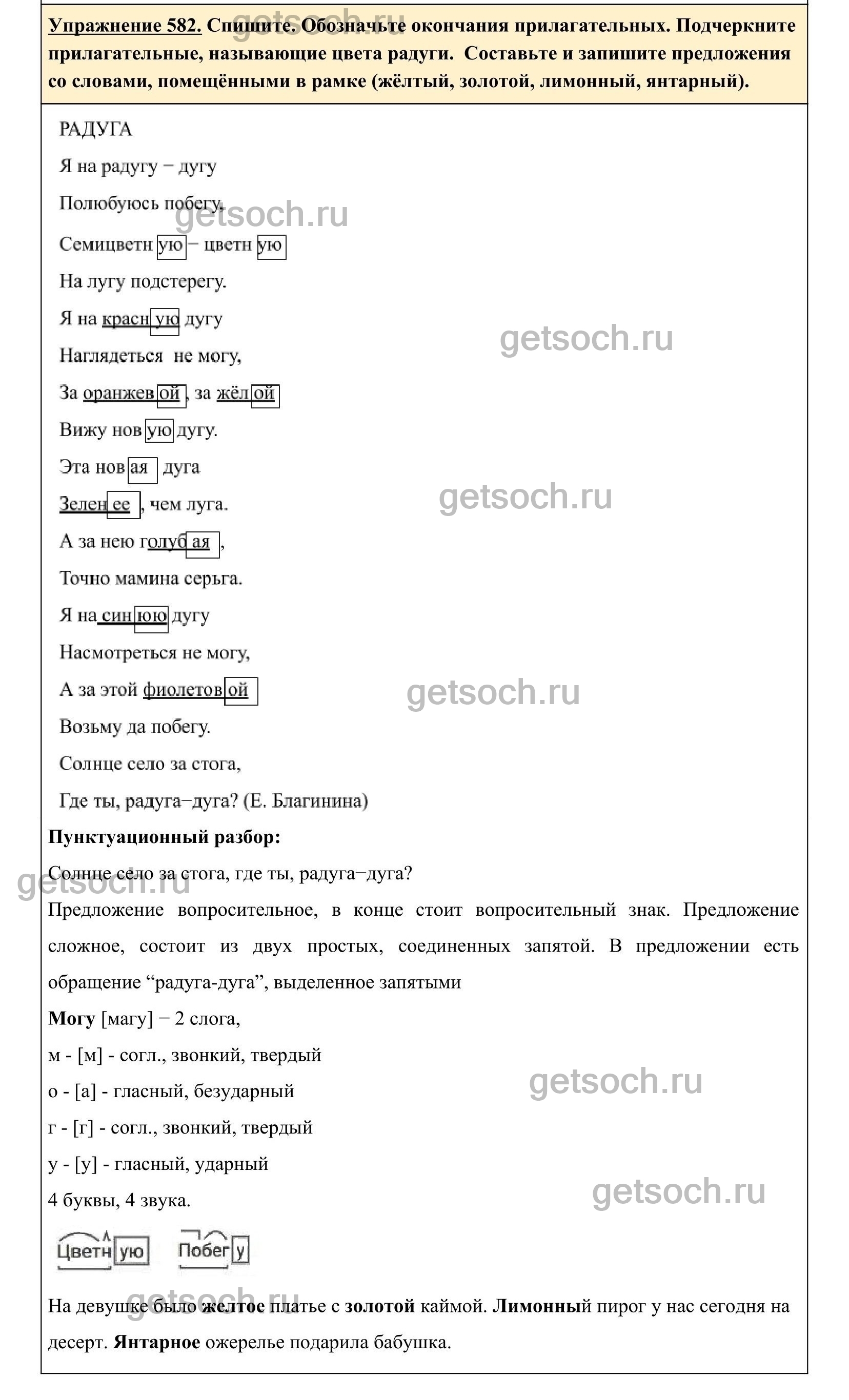 Рассмотрим ответы на Упражнение 582 из учебника по русскому языку для 5 класса Ладыженская