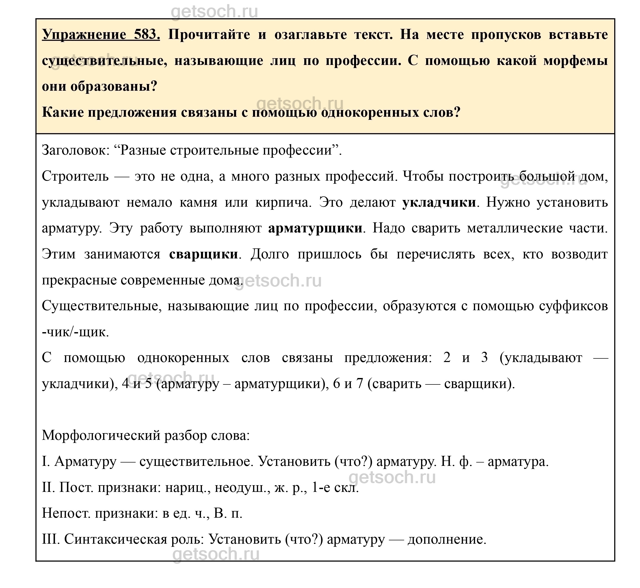 Рассмотрим ответы на Упражнение 583 из учебника по русскому языку для 5 класса Ладыженская