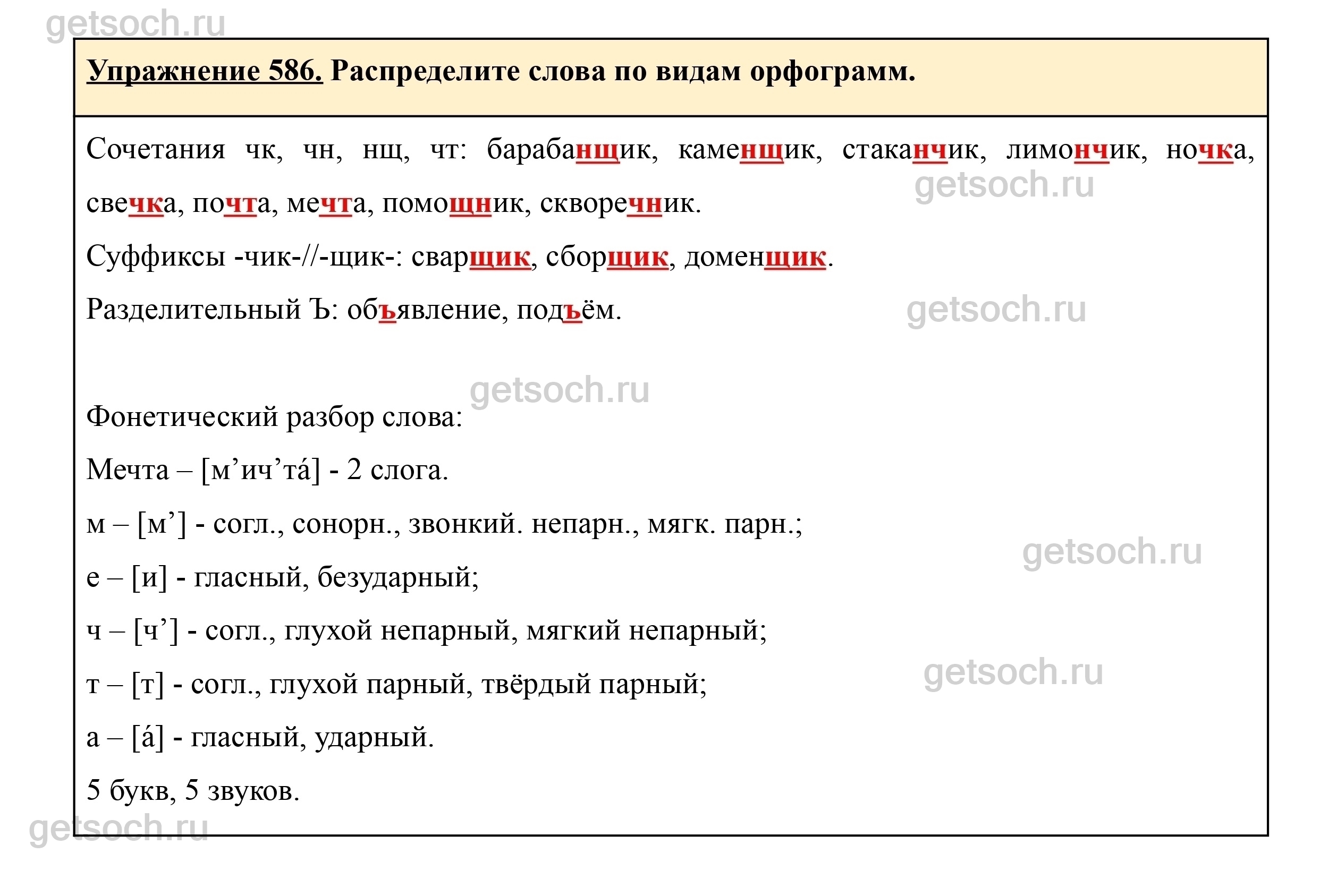 Рассмотрим ответы на Упражнение 586 из учебника по русскому языку для 5 класса Ладыженская