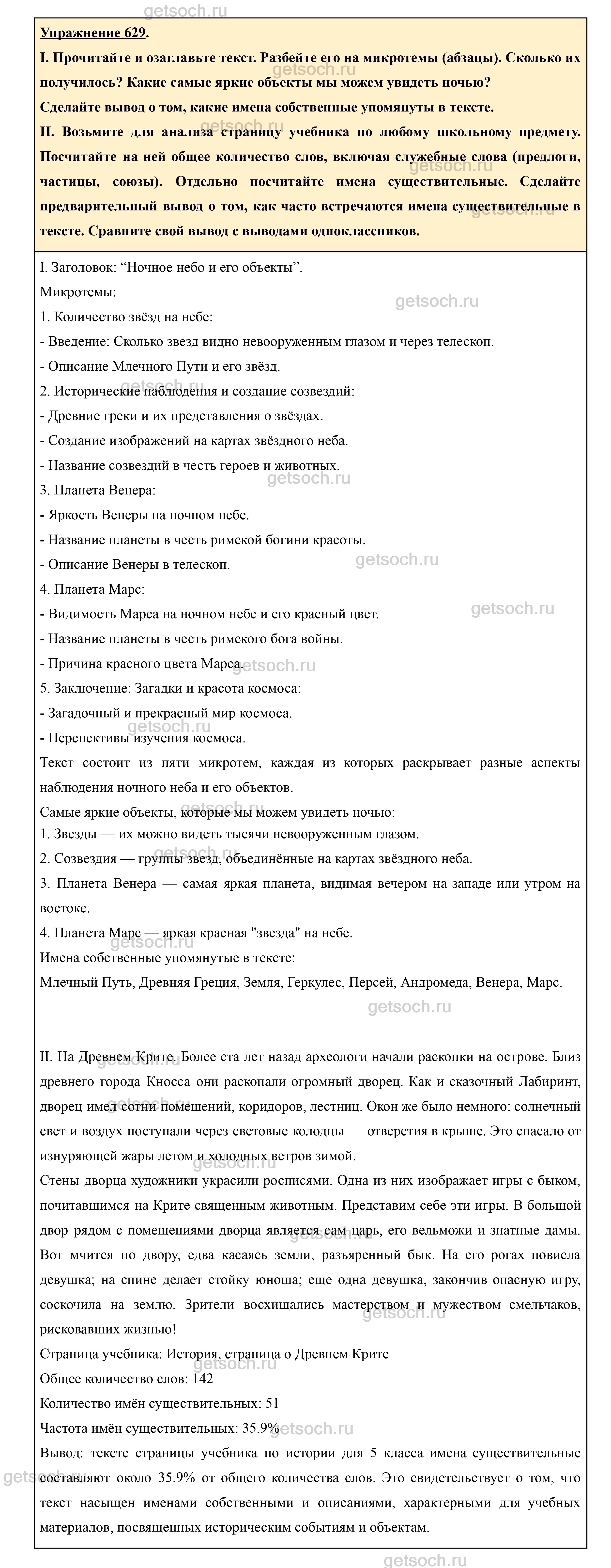 Рассмотрим ответы на Упражнение 629 из учебника по русскому языку для 5 класса Ладыженская