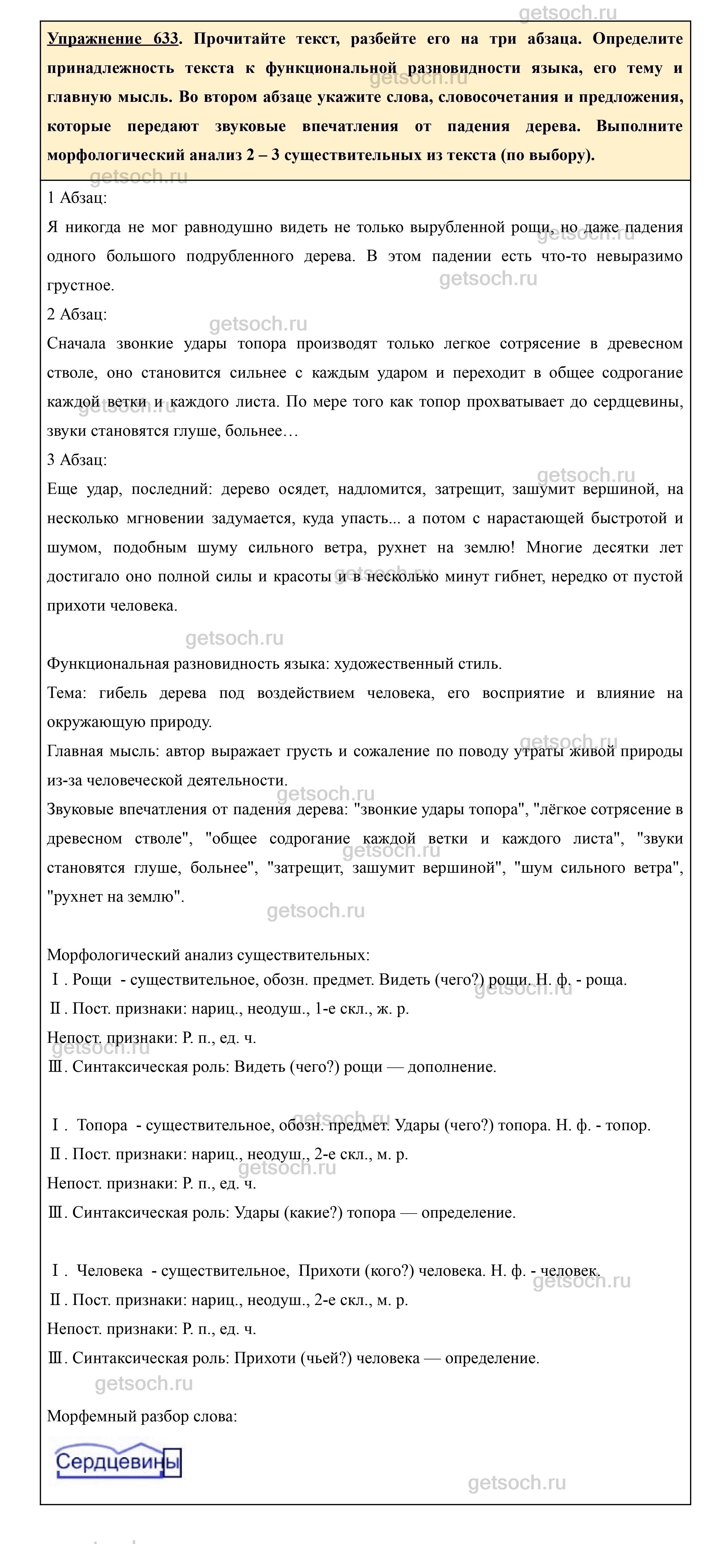 Рассмотрим ответы на Упражнение 633 из учебника по русскому языку для 5 класса Ладыженская