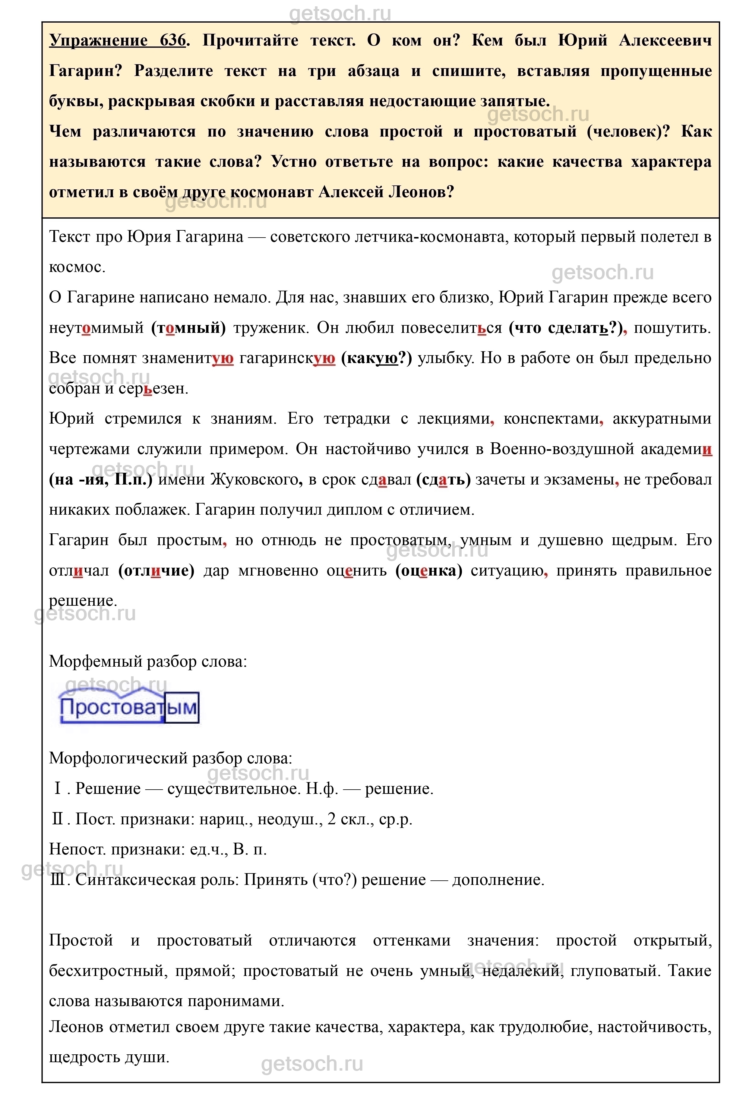 Рассмотрим ответы на Упражнение 636 из учебника по русскому языку для 5 класса Ладыженская