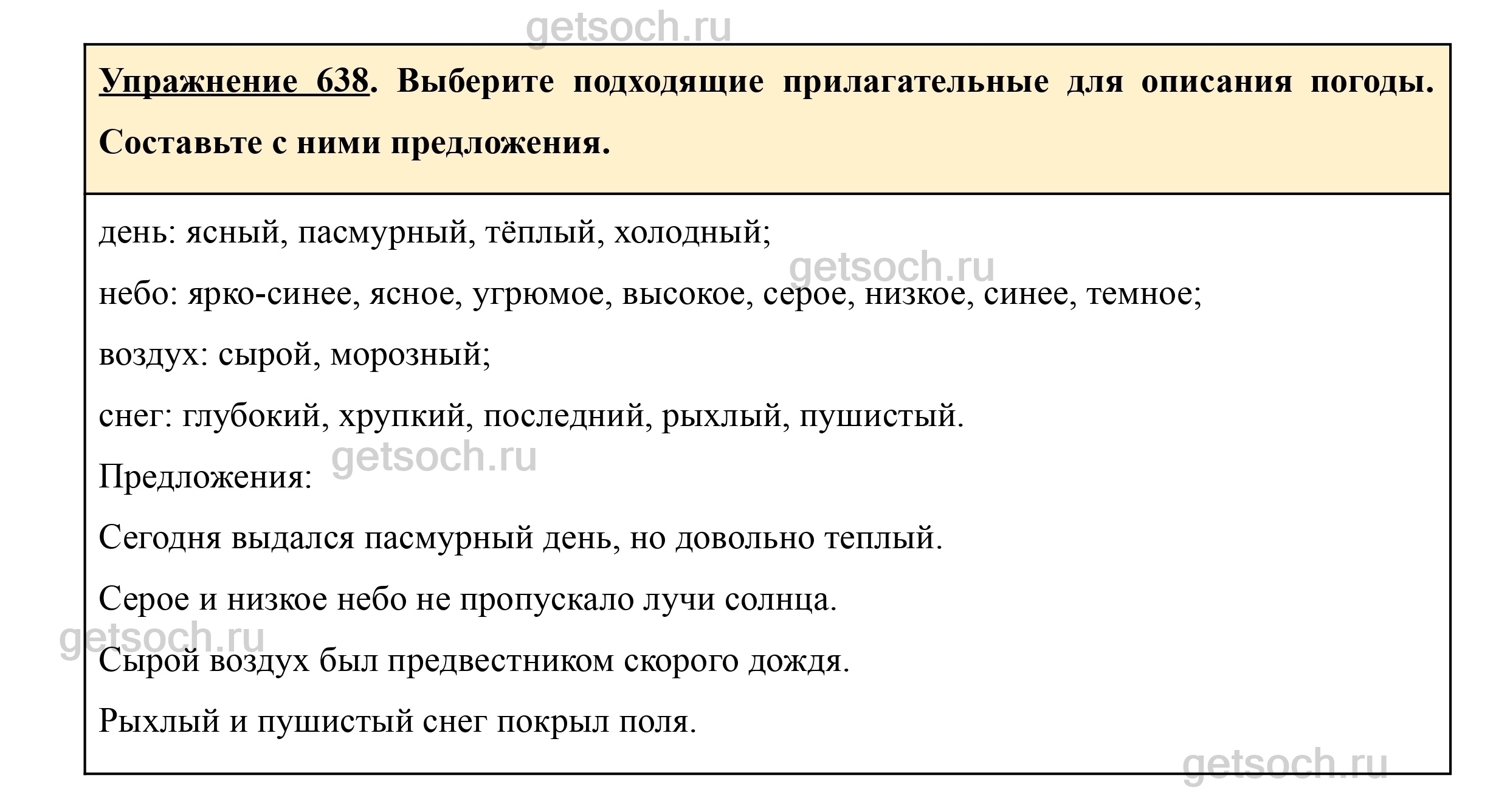 Рассмотрим ответы на Упражнение 638 из учебника по русскому языку для 5 класса Ладыженская
