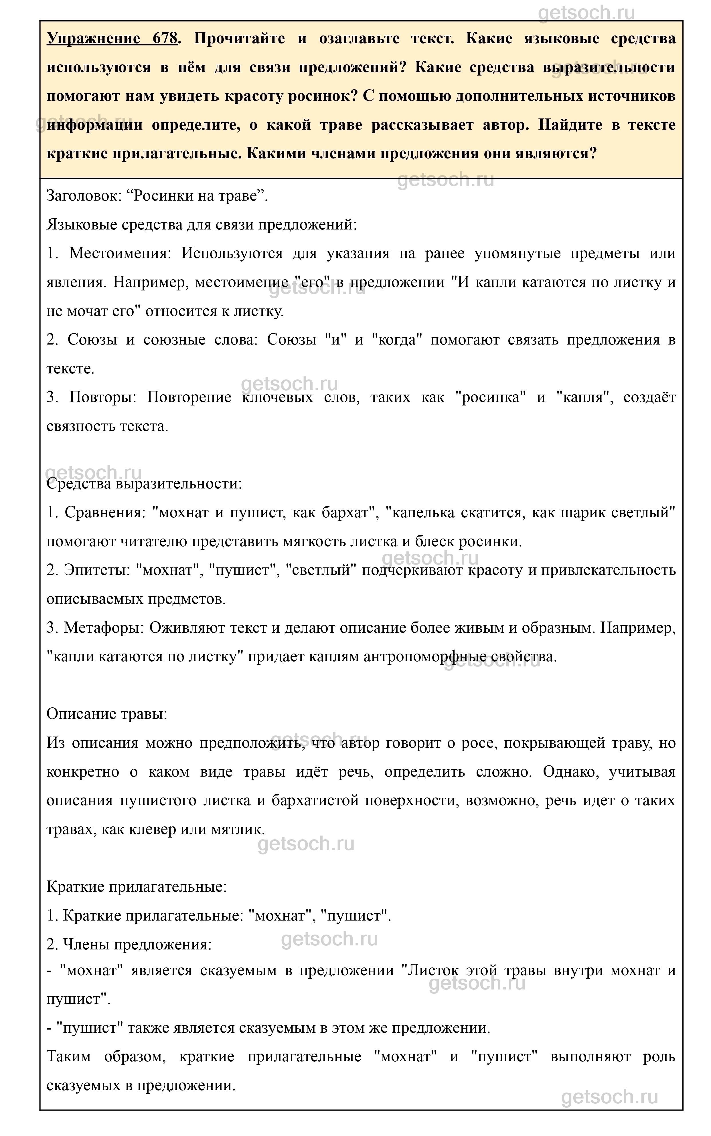 Рассмотрим ответы на Упражнение 678 из учебника по русскому языку для 5 класса Ладыженская