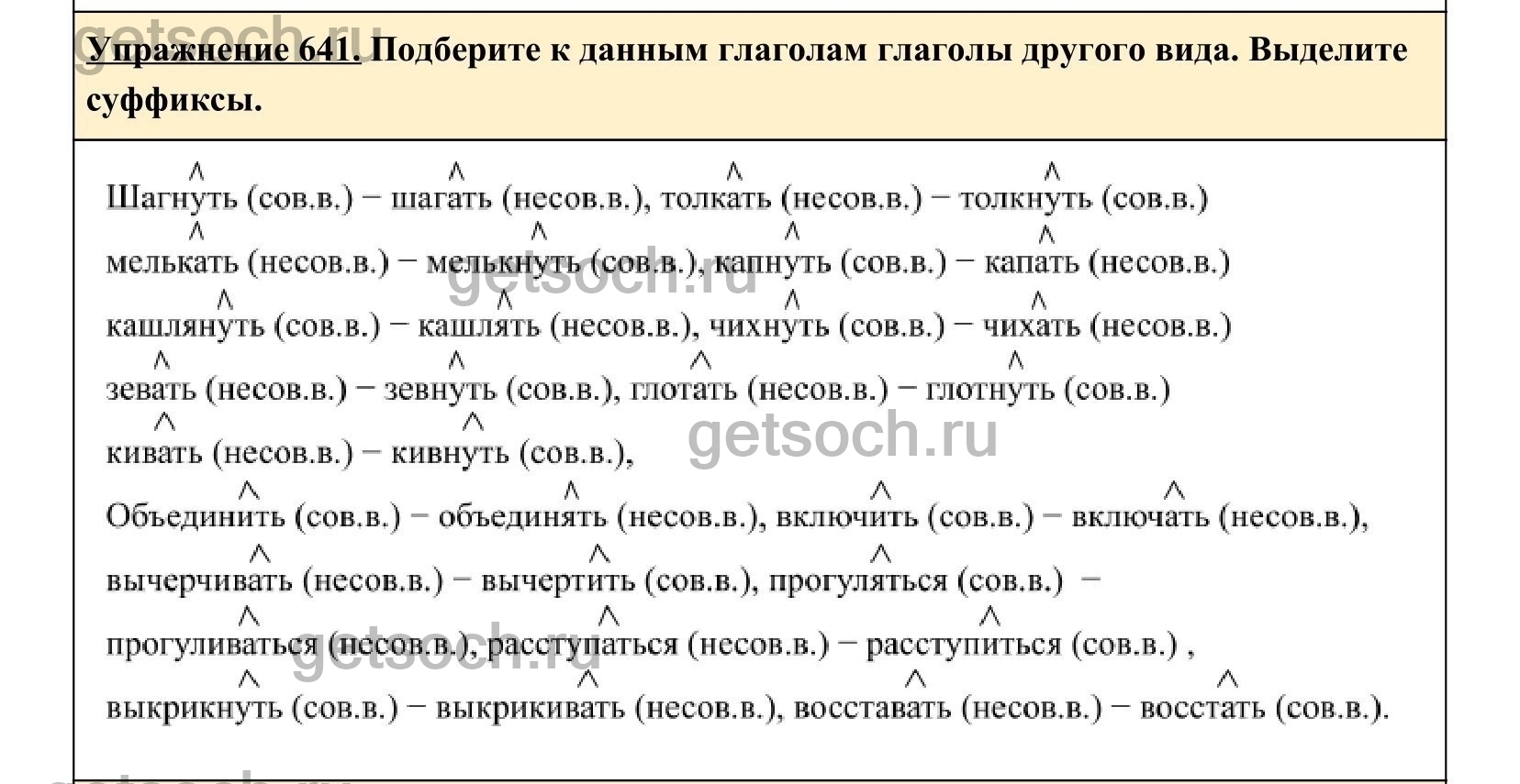 Подберите к данным глаголам глаголы другого вида. Выделите суффиксы.Образец. Объединить (сов. в.) — объединять (несов. в.).Шагнуть, толкать, мелькать, ка́пнуть, ка́шлянуть, чихну́ть, зевать, глотать, кивать.Об(?)единить, включить, вычерчивать, прогуляться, ра(с, сс)тупаться, выкрикнуть, во(с, сс)тавать.