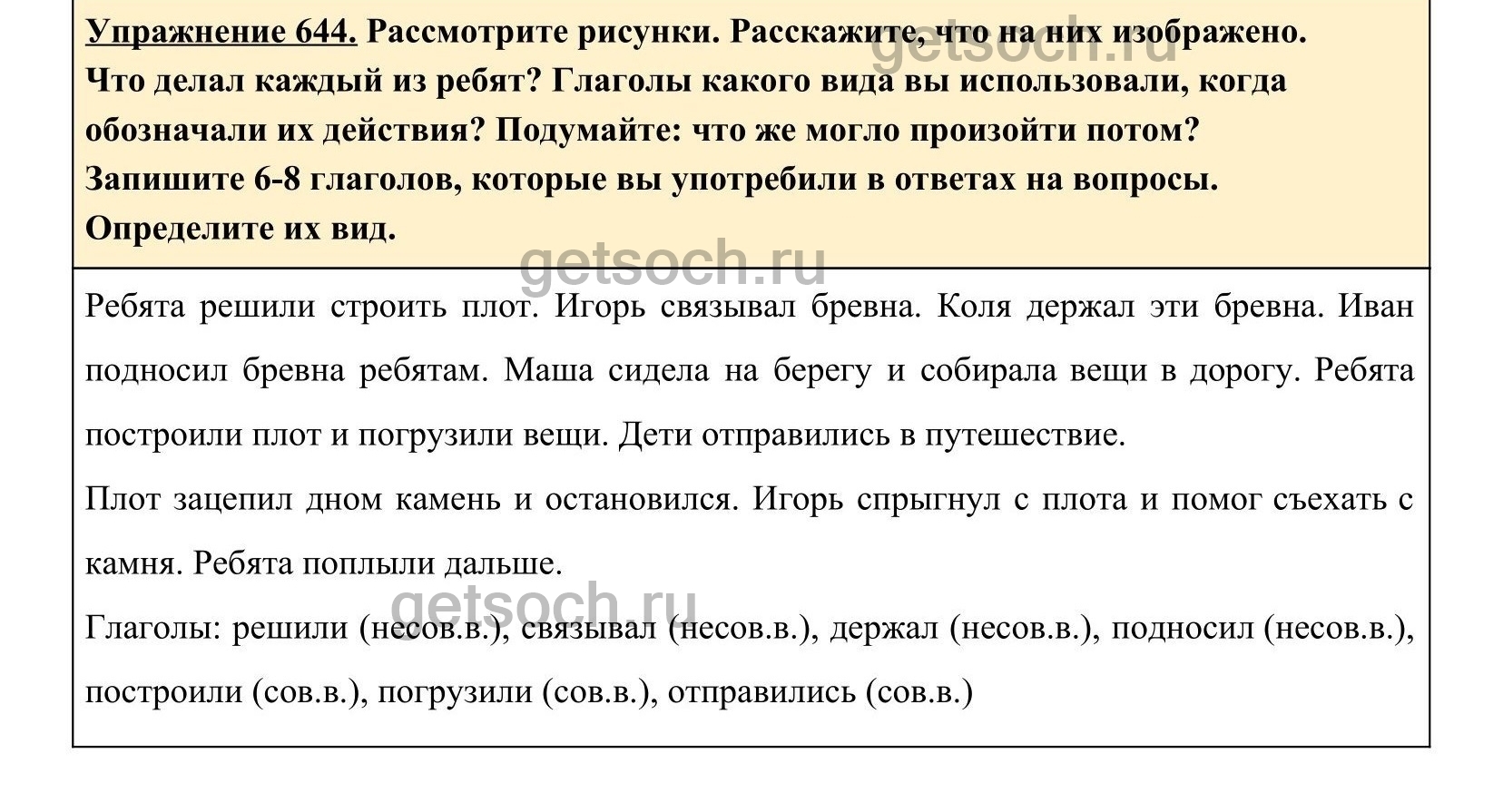 Рассмотрите рисунки. Расскажите, что на них изображено.Что делал каждый из ребят? Глаголы какого вида вы использовали, когда обозначали их действия? Подумайте: что же могло произойти потом?Запишите 6-8 глаголов, которые вы употребили в ответах на вопросы. Определите их вид.