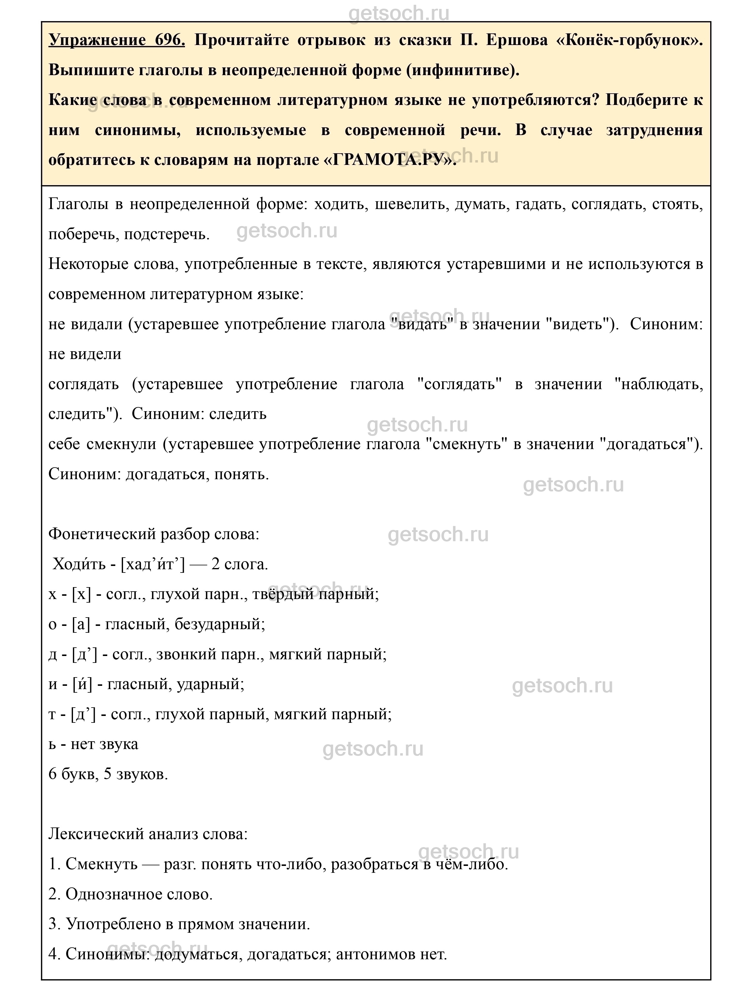 Рассмотрим ответы на Упражнение 696 из учебника по русскому языку для 5 класса Ладыженская