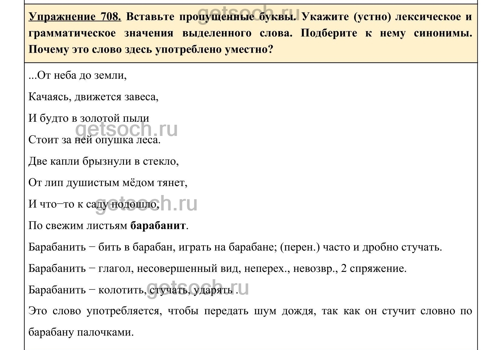 Рассмотрим ответы на Упражнение 708 из учебника по русскому языку для 5 класса Ладыженская