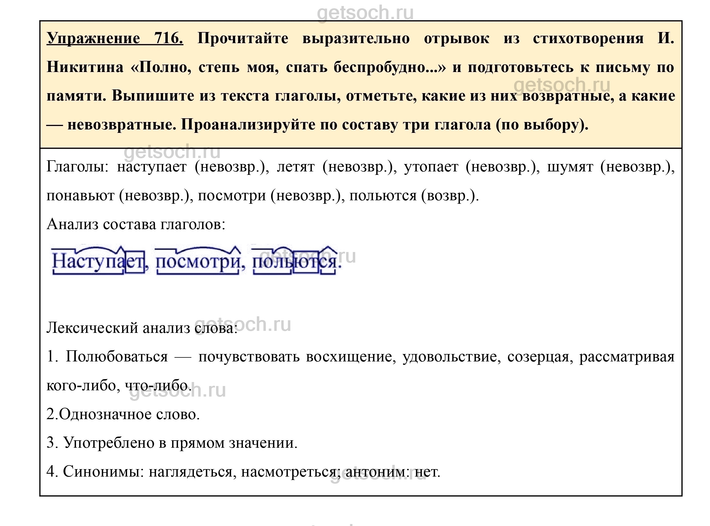 Рассмотрим ответы на Упражнение 716 из учебника по русскому языку для 5 класса Ладыженская
