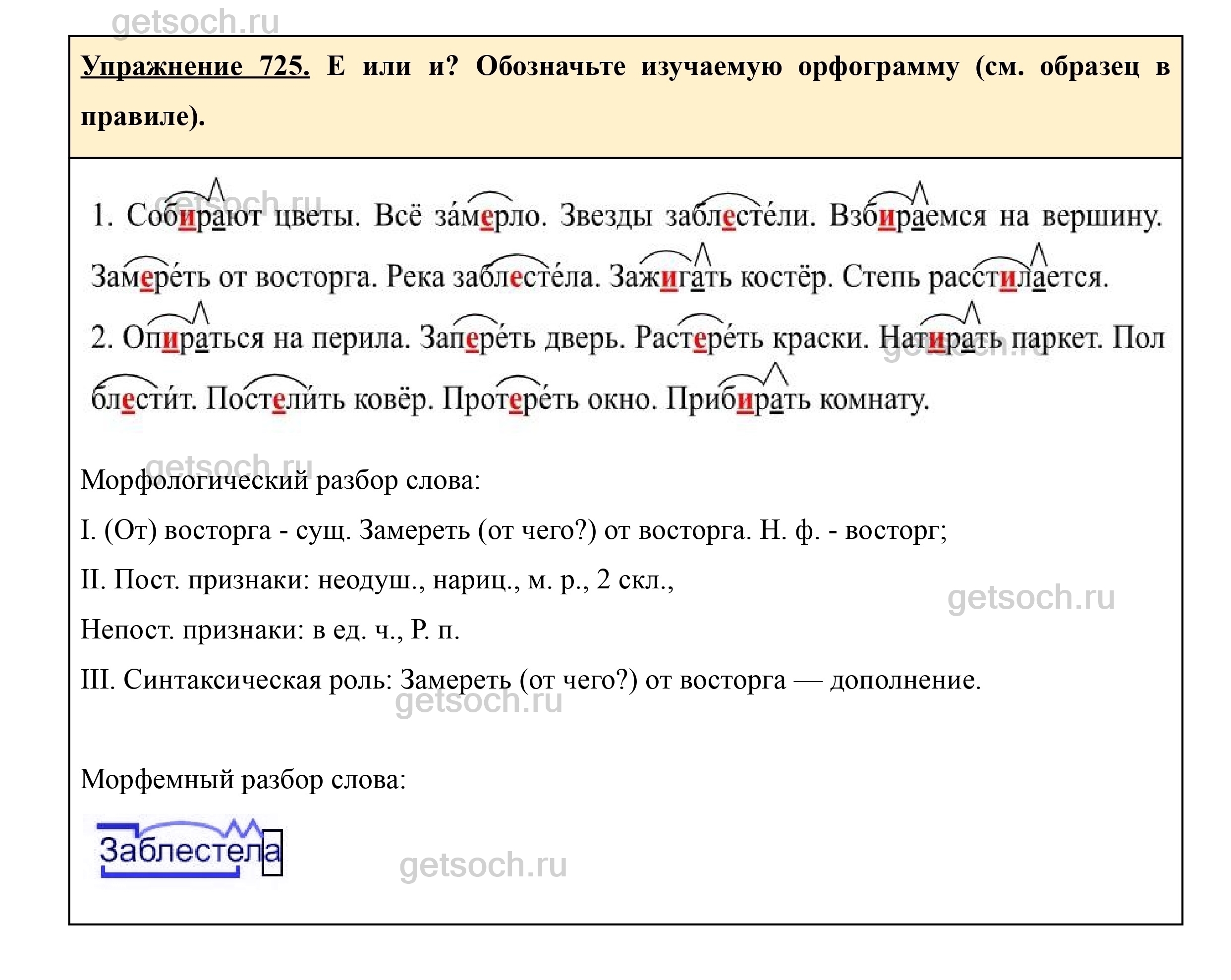 Рассмотрим ответы на Упражнение 725 из учебника по русскому языку для 5 класса Ладыженская