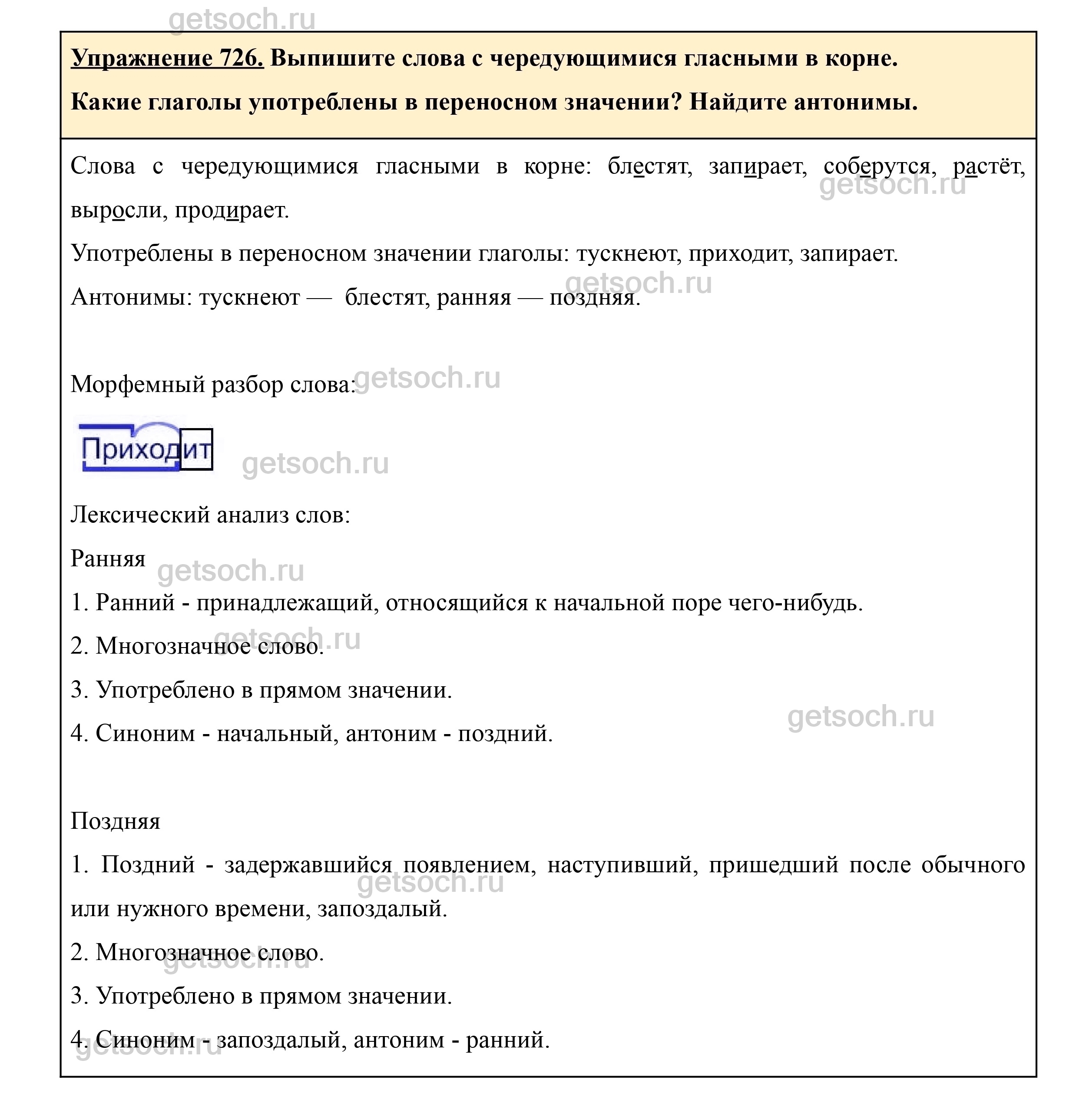 Рассмотрим ответы на Упражнение 726 из учебника по русскому языку для 5 класса Ладыженская