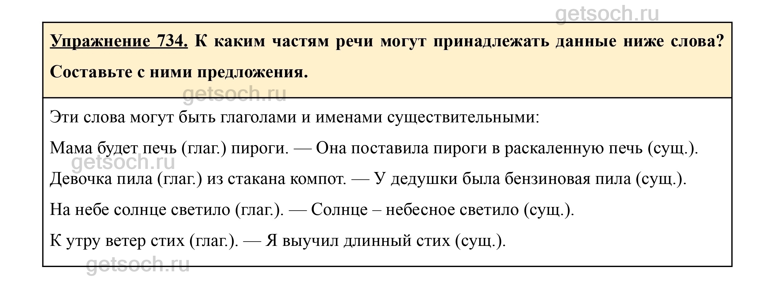 Рассмотрим ответы на Упражнение 734 из учебника по русскому языку для 5 класса Ладыженской