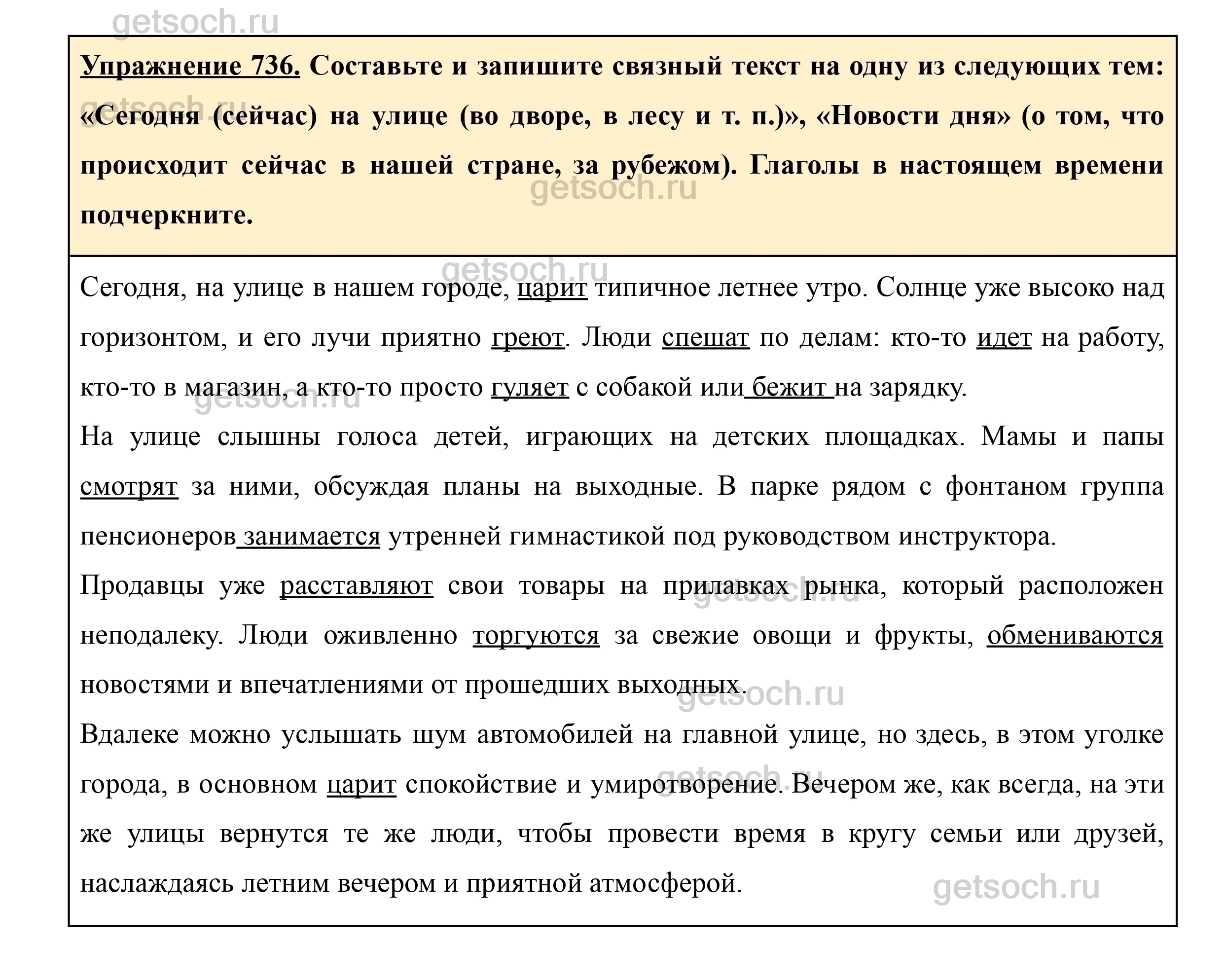 Рассмотрим ответы на Упражнение 736 из учебника по русскому языку для 5 класса Ладыженская
