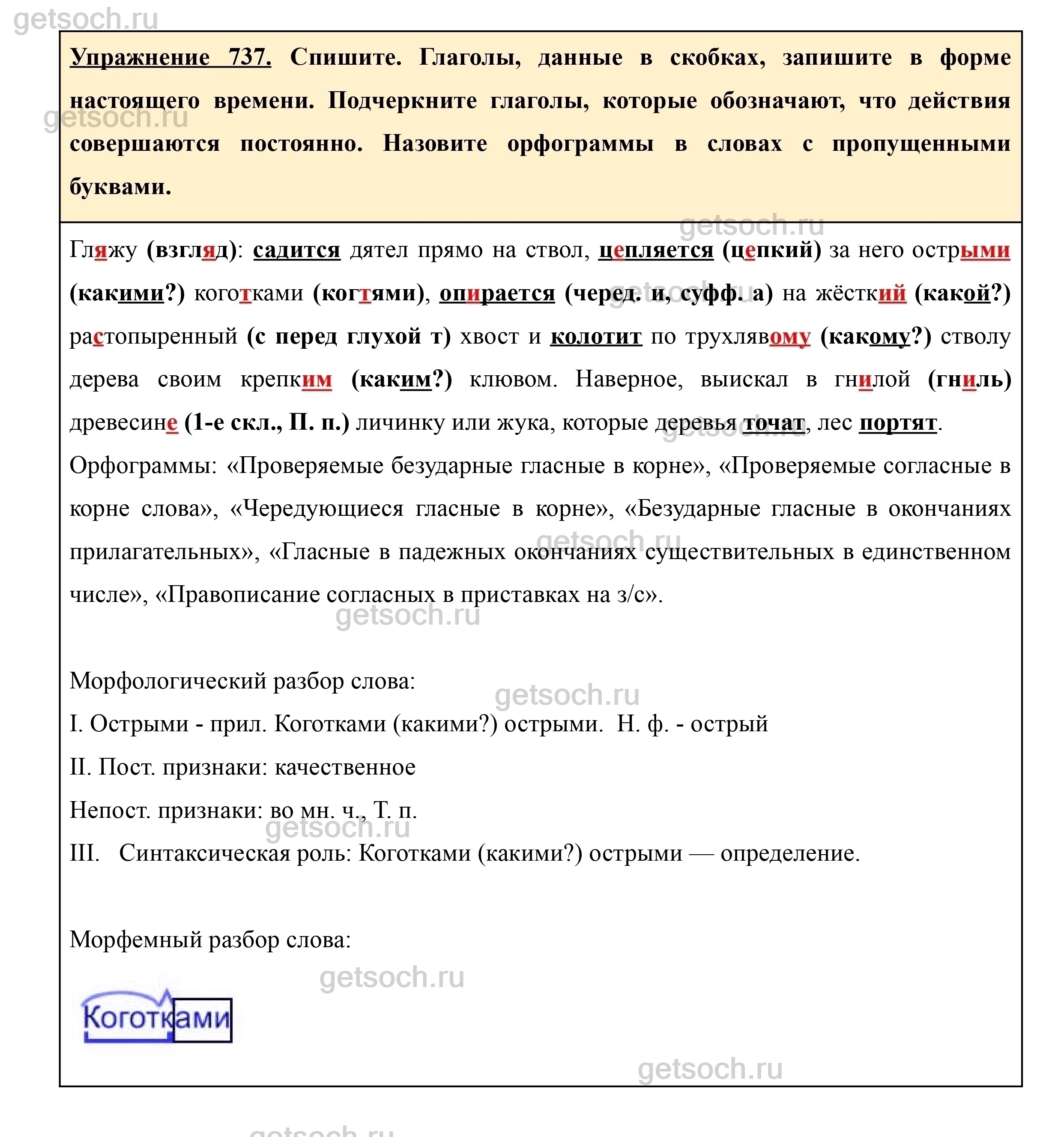 Рассмотрим ответы на Упражнение 737 из учебника по русскому языку для 5 класса Ладыженская