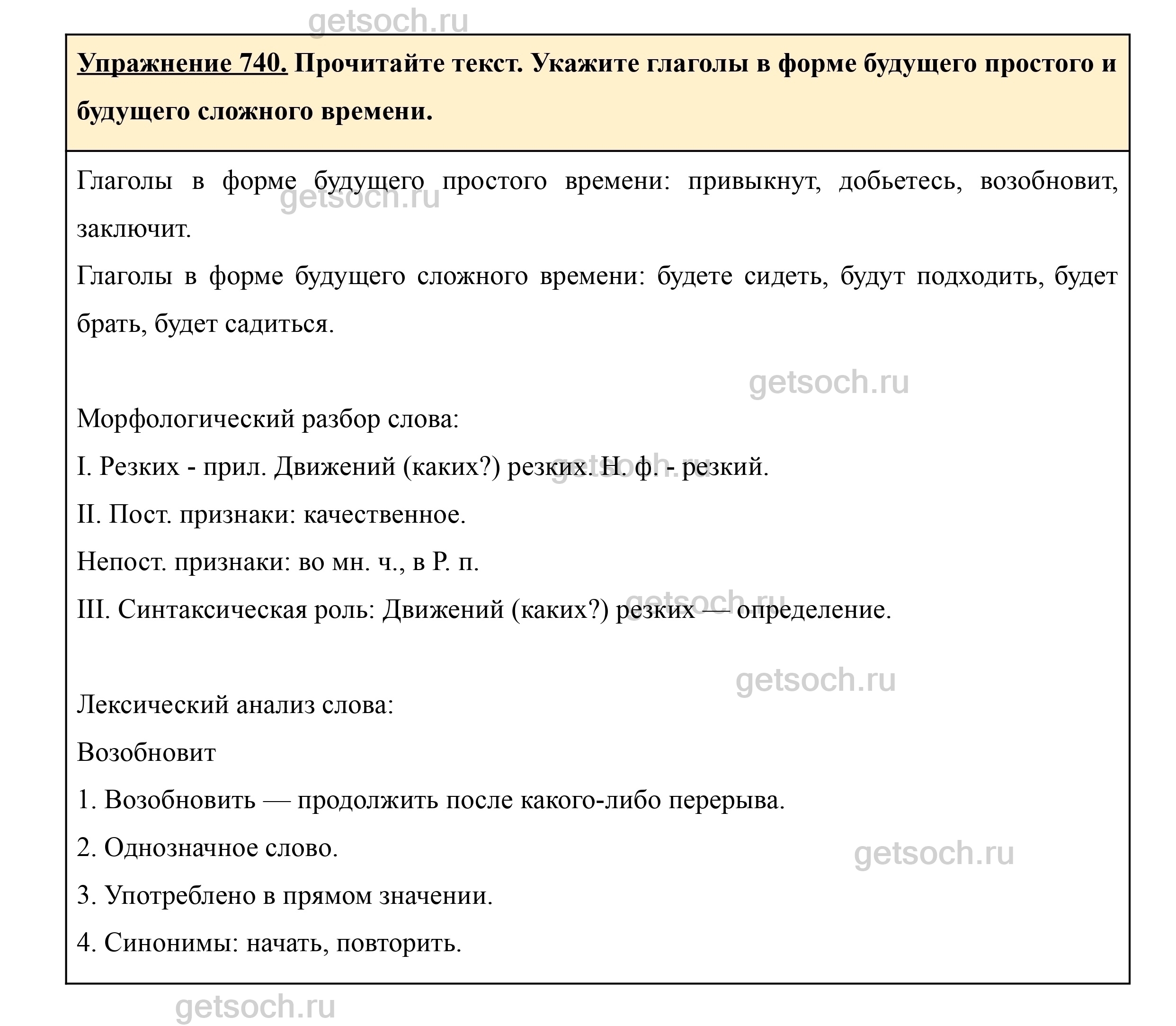 Рассмотрим ответы на Упражнение 740 из учебника по русскому языку для 5 класса Ладыженской