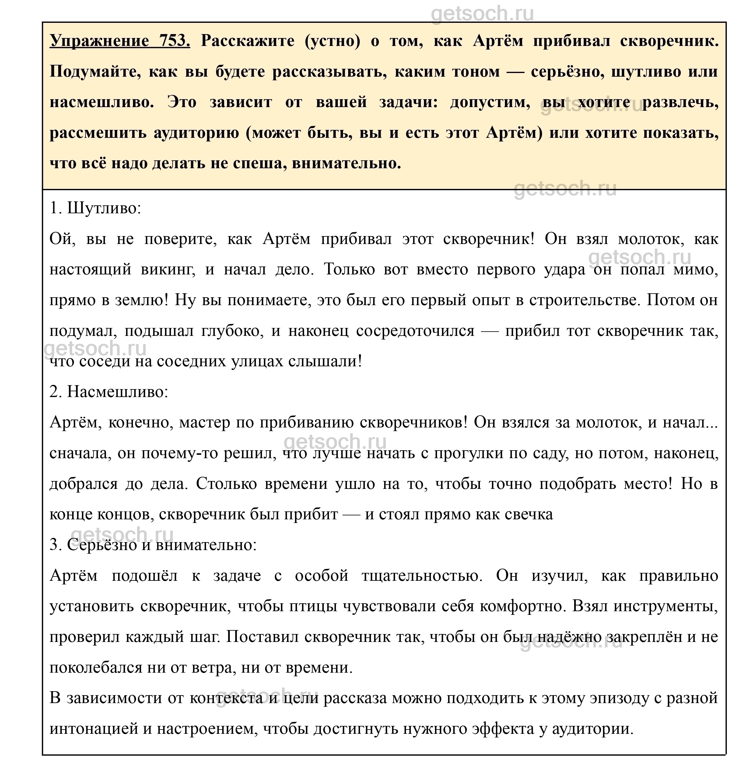 Рассмотрим ответы на Упражнение 753 из учебника по русскому языку для 5 класса Ладыженская