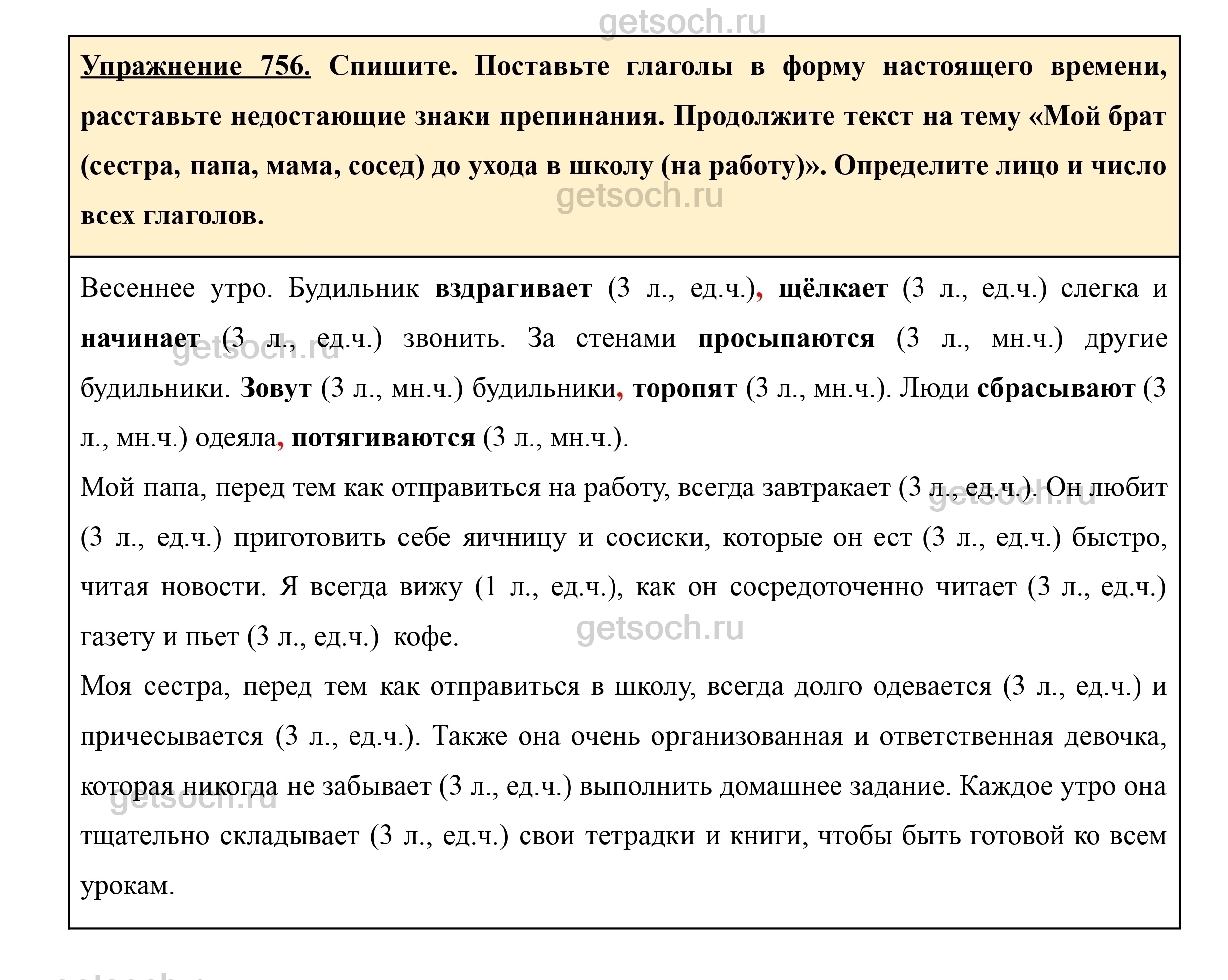 Рассмотрим ответы на Упражнение 756 из учебника по русскому языку для 5 класса Ладыженская