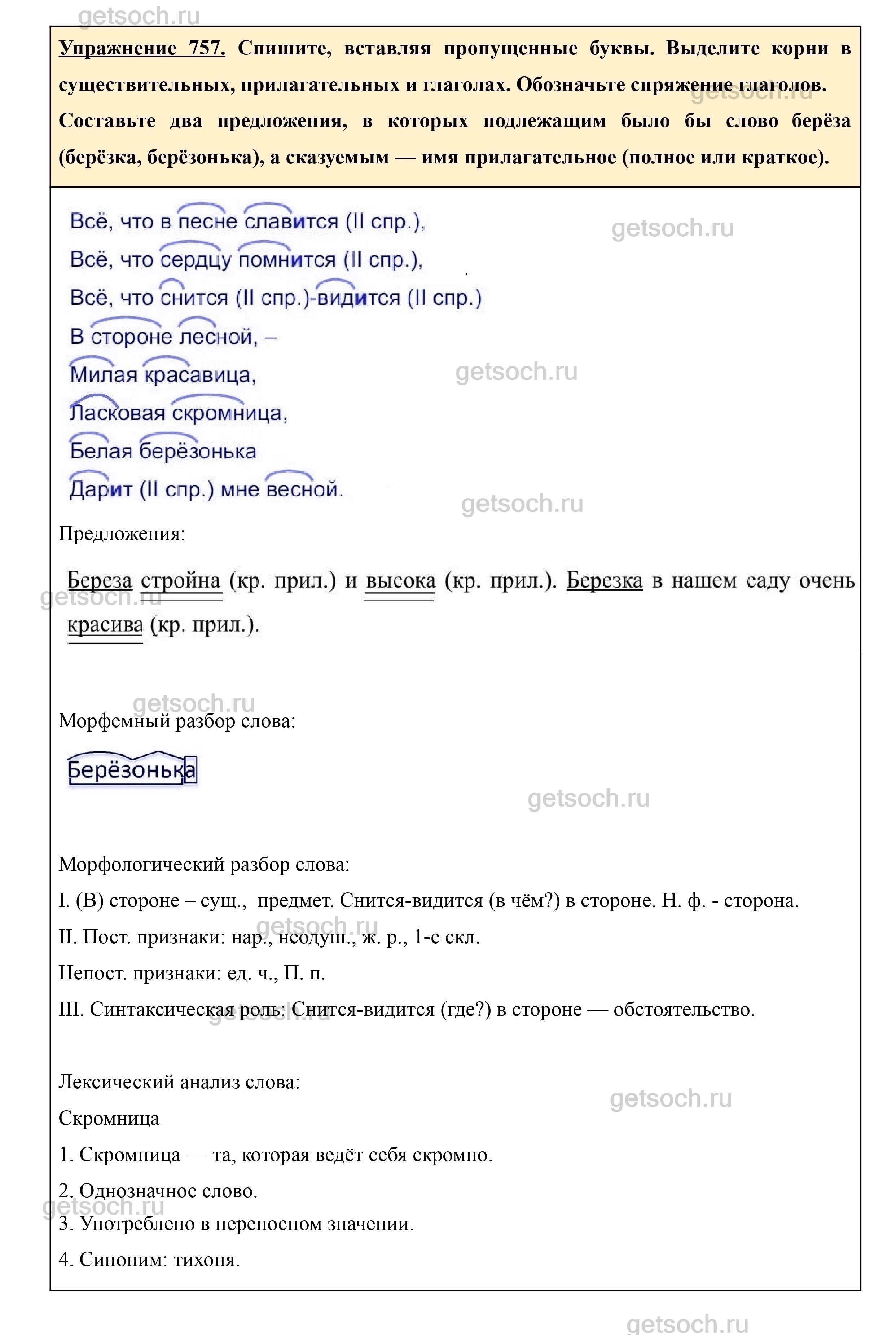 Рассмотрим ответы на Упражнение 757 из учебника по русскому языку для 5 класса Ладыженская