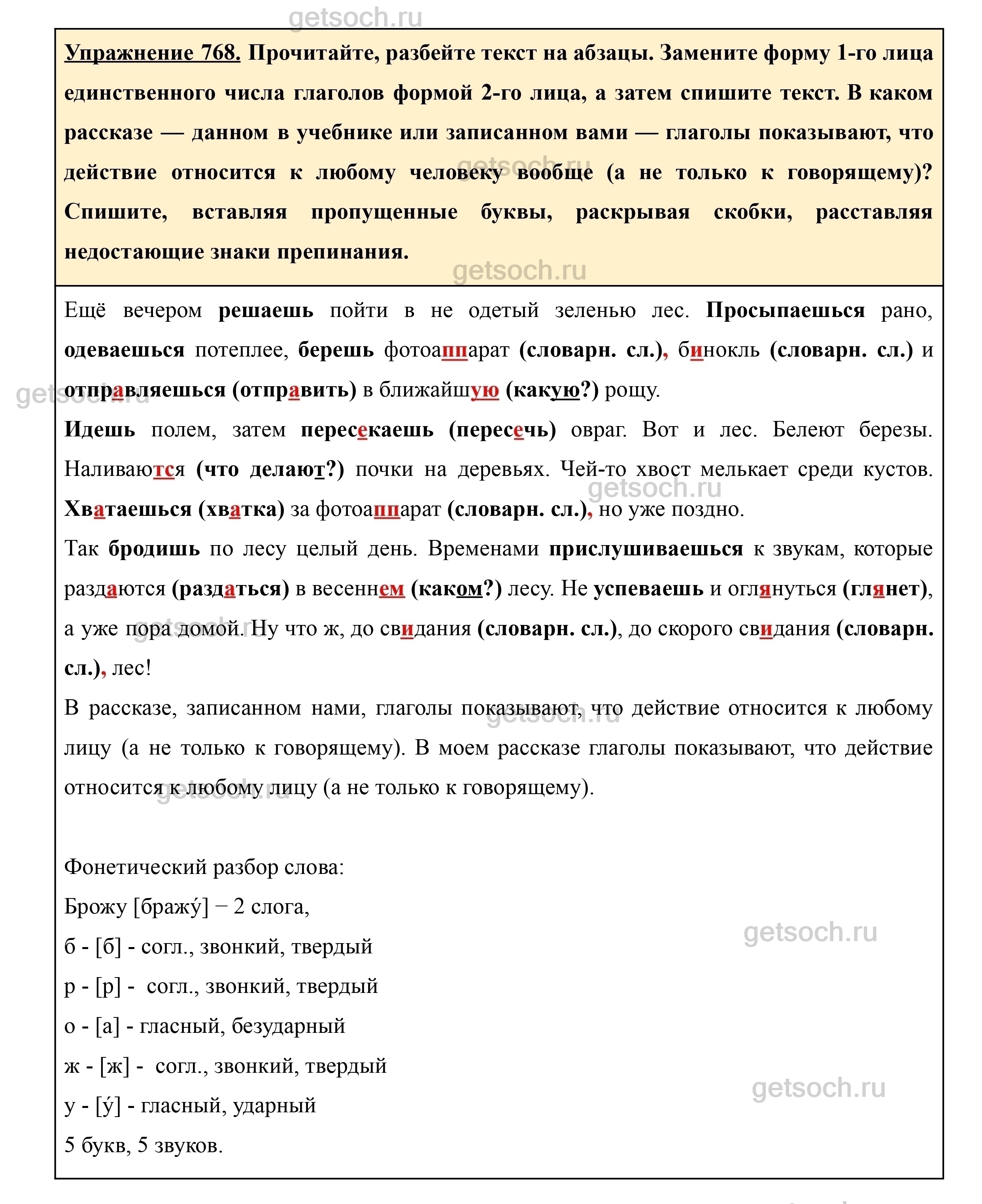 Рассмотрим ответы на Упражнение 768 из учебника по русскому языку для 5 класса Ладыженская