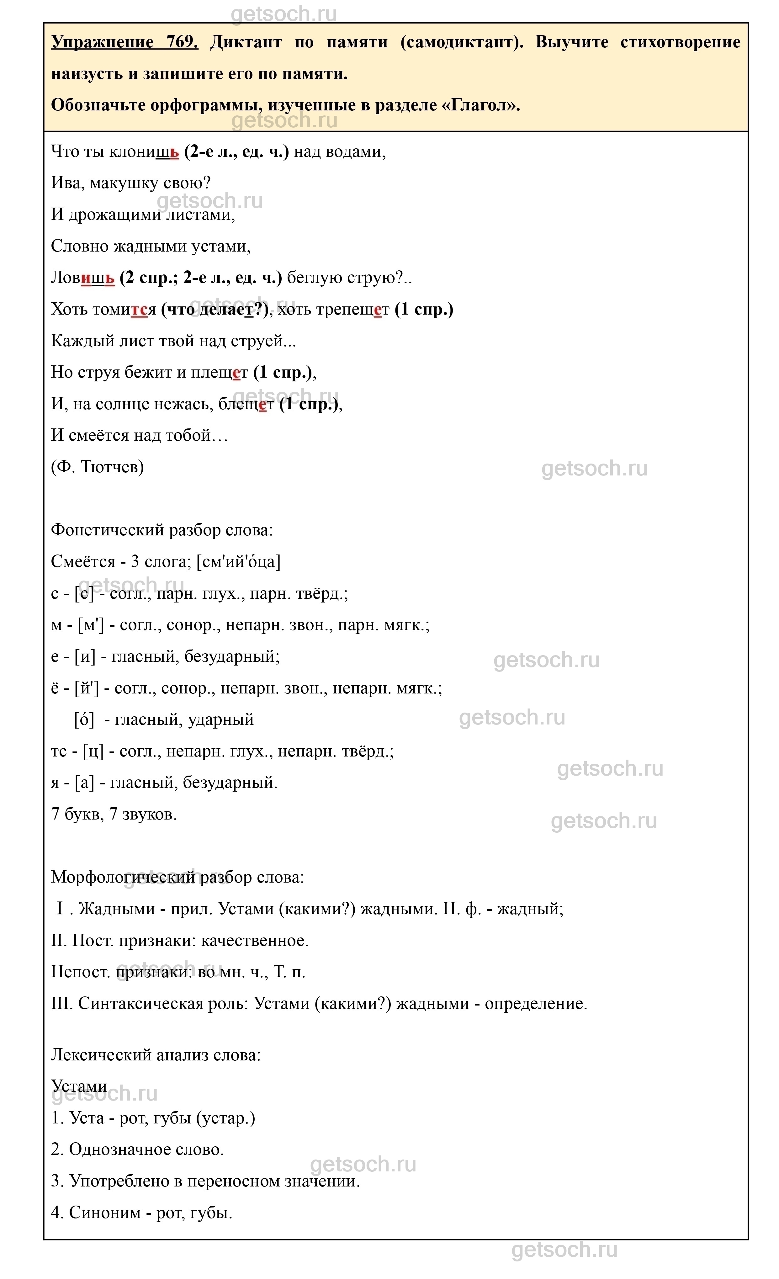 Рассмотрим ответы на Упражнение 769 из учебника по русскому языку для 5 класса Ладыженская