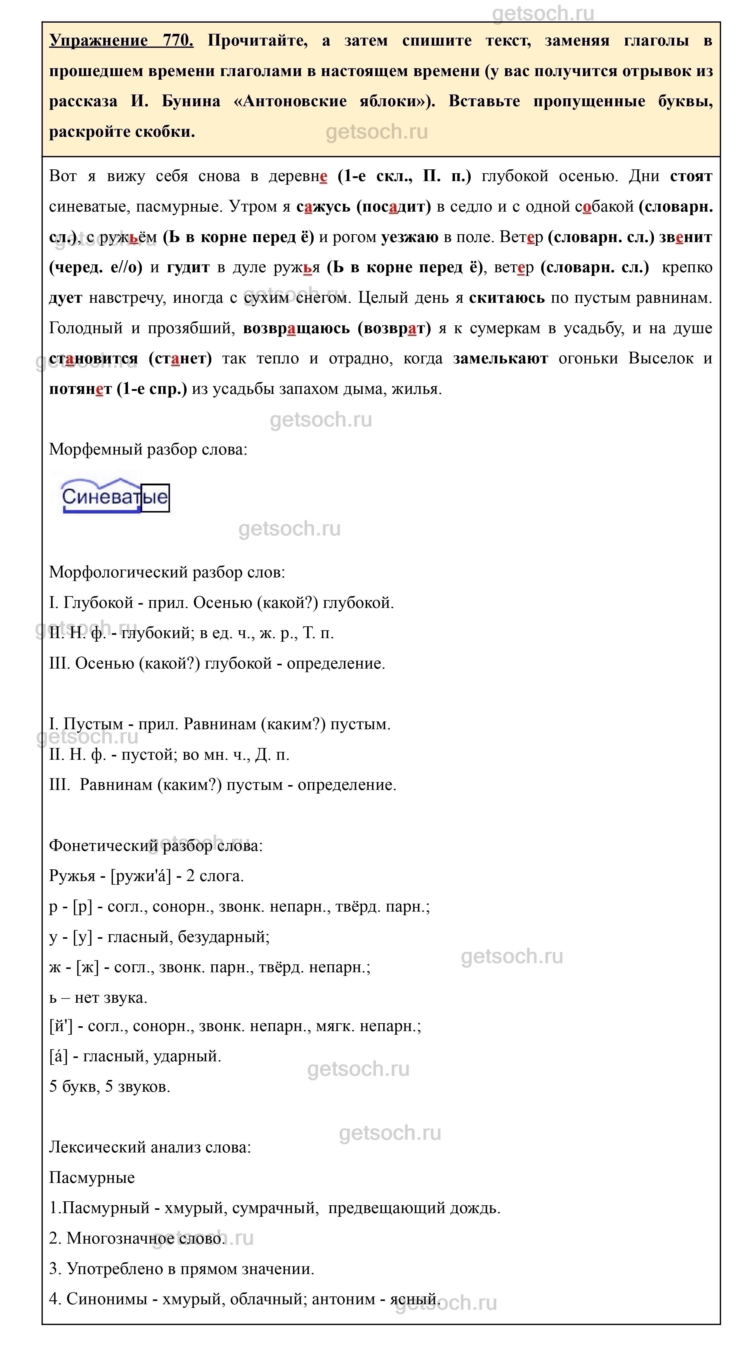 Рассмотрим ответы на Упражнение 770 из учебника по русскому языку для 5 класса Ладыженской