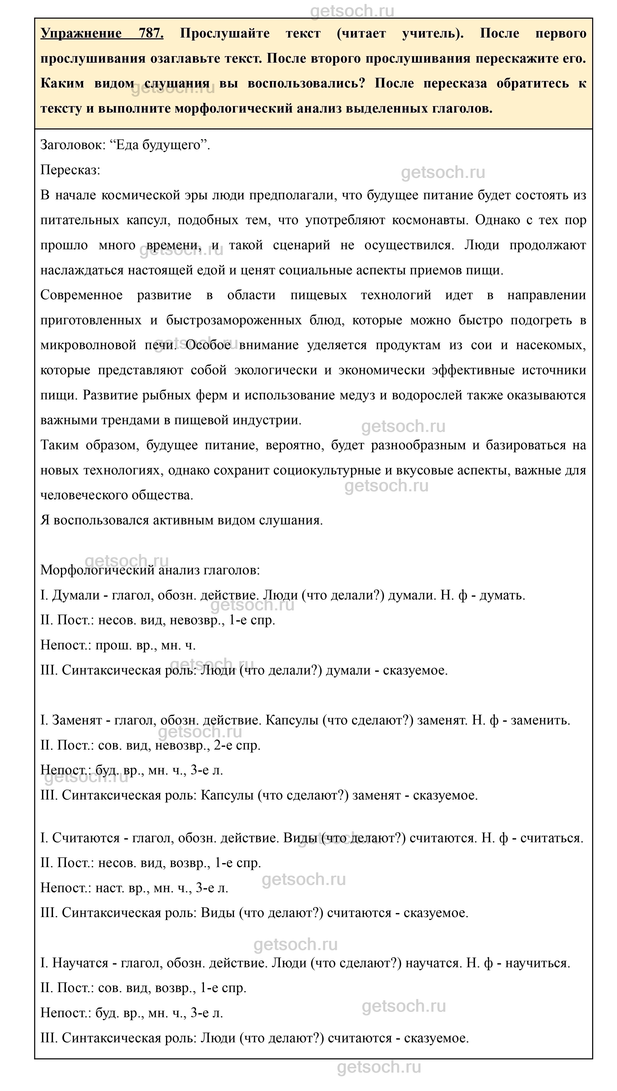 Рассмотрим ответы на Упражнение 787 из учебника по русскому языку для 5 класса Ладыженской