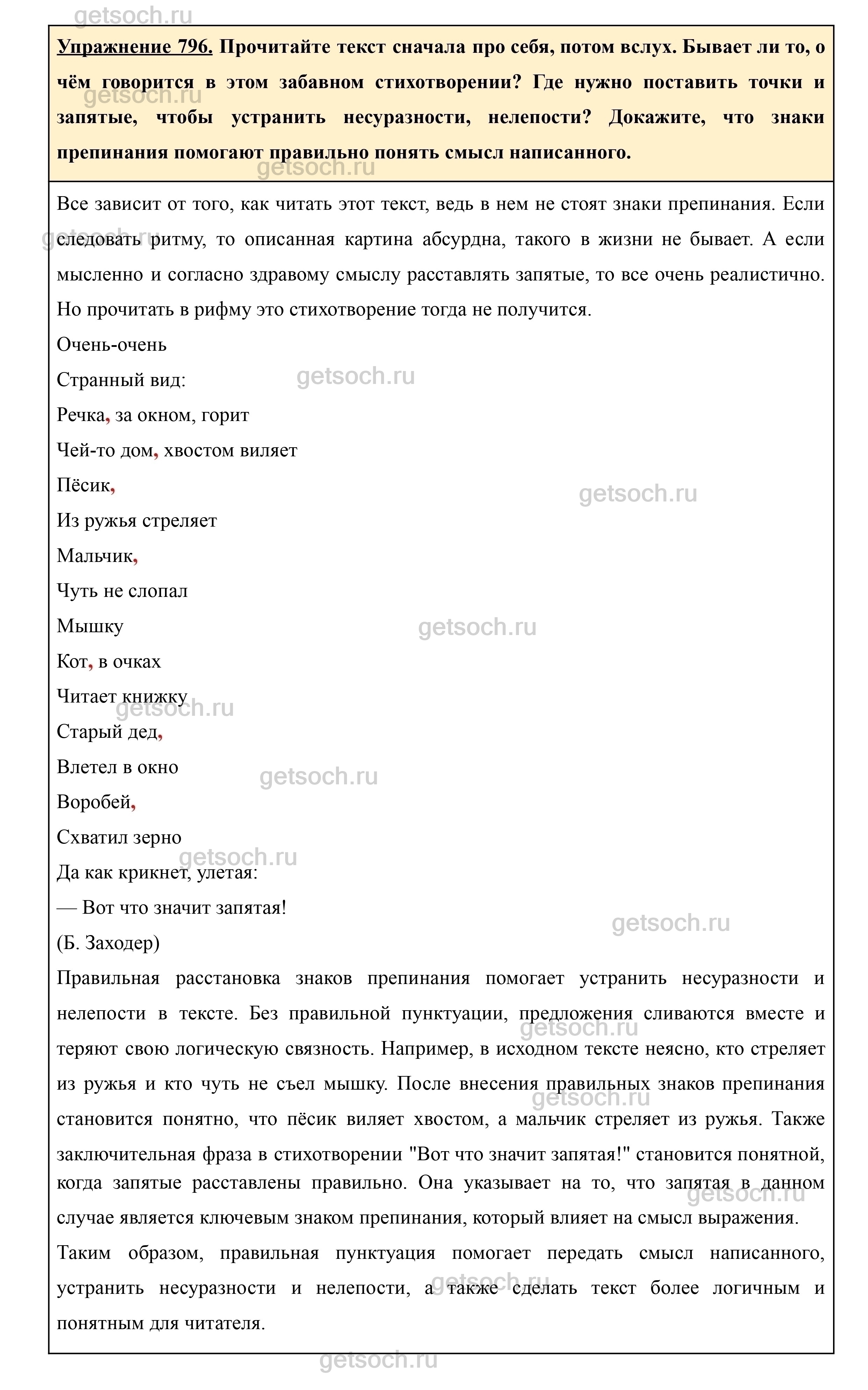 Рассмотрим ответы на Упражнение 796 из учебника по русскому языку для 5 класса Ладыженской