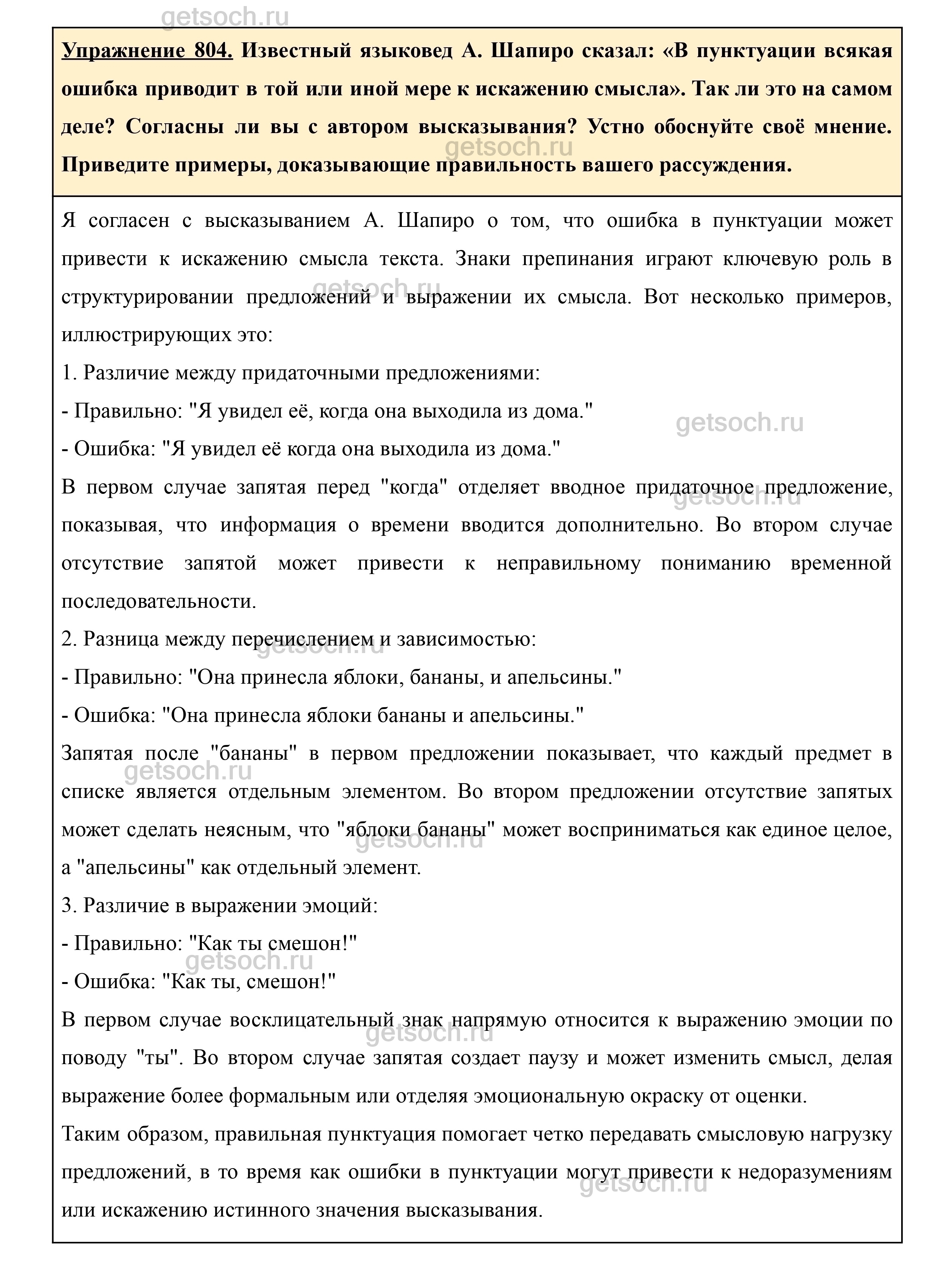 Рассмотрим ответы на Упражнение 804 из учебника по русскому языку для 5 класса Ладыженской