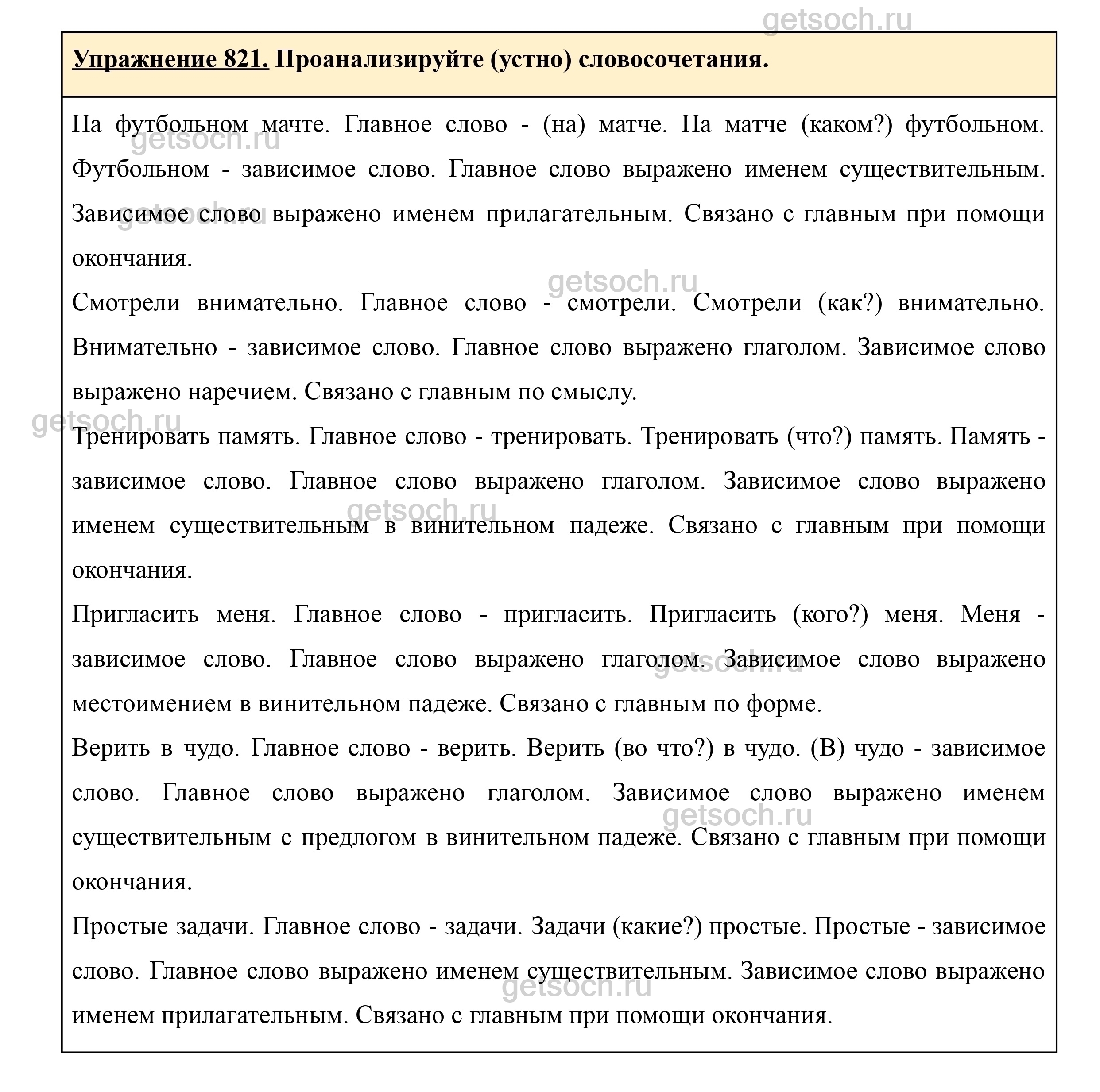 Рассмотрим ответы на Упражнение 821 из учебника по русскому языку для 5 класса Ладыженской