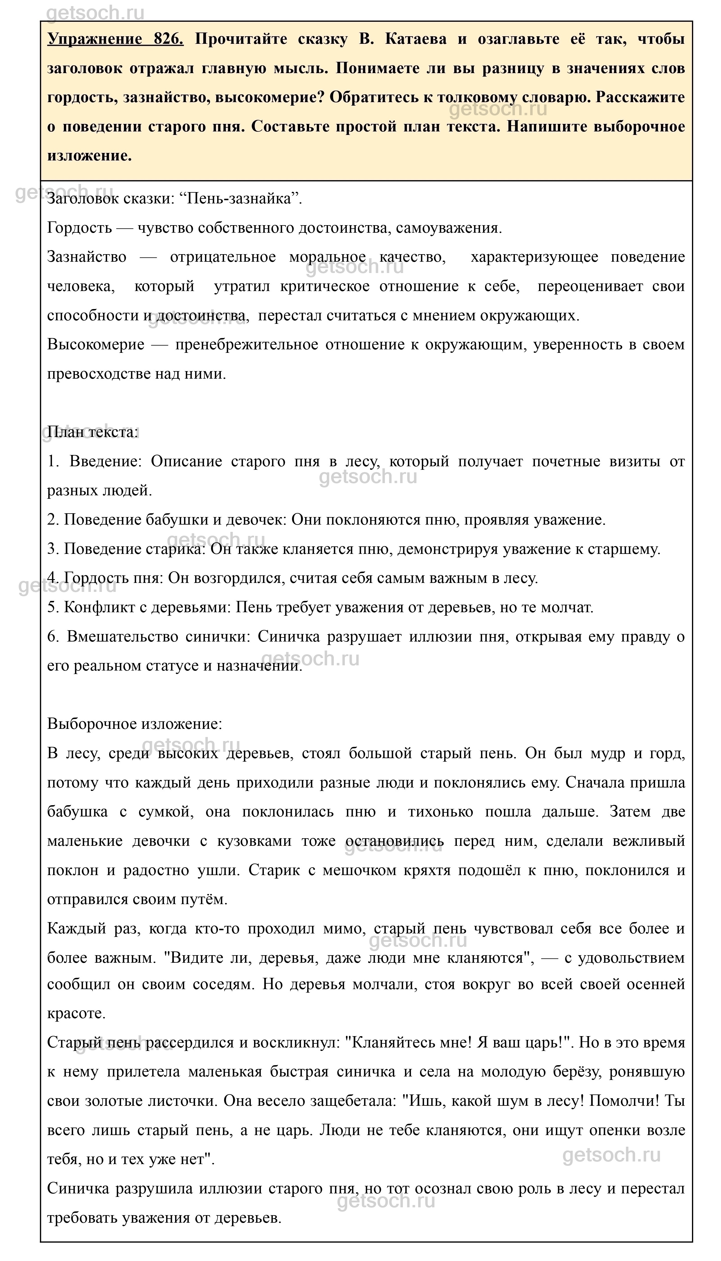 Рассмотрим ответы на Упражнение 826 из учебника по русскому языку для 5 класса Ладыженской