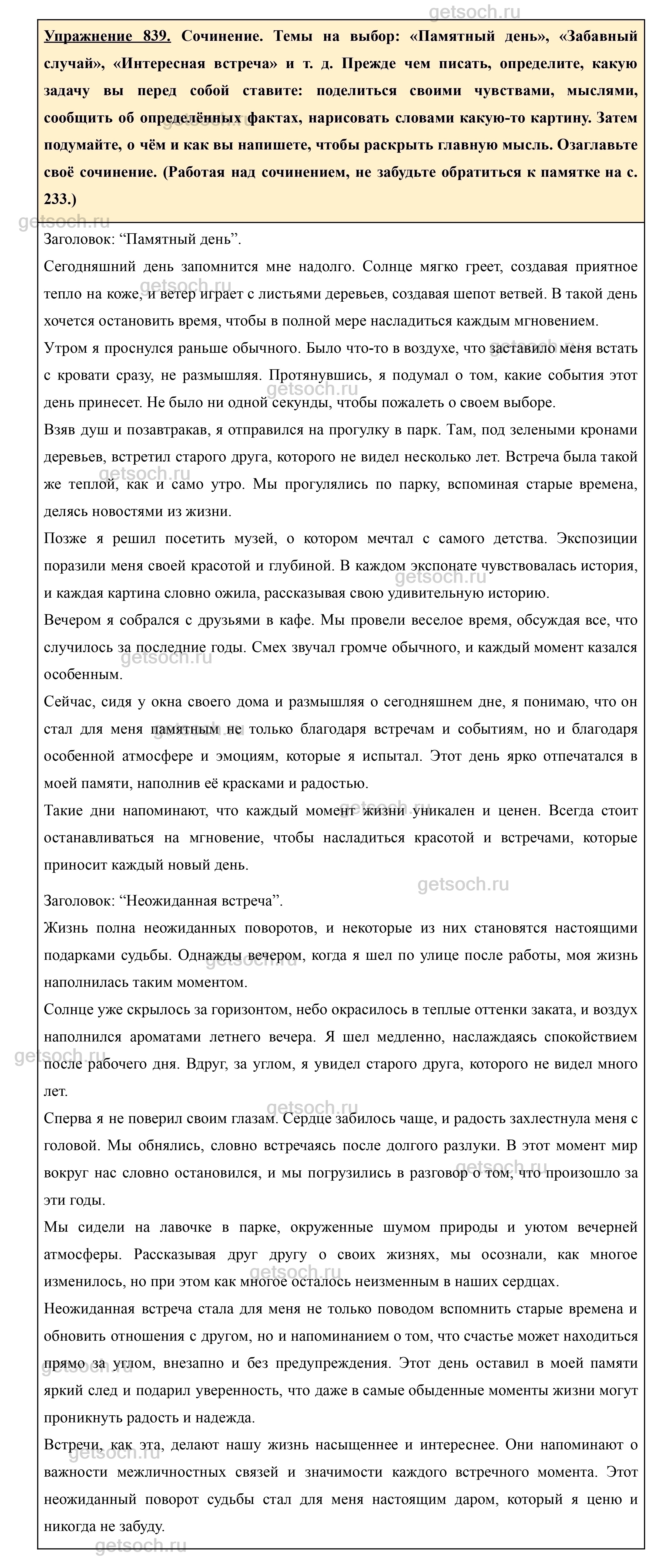 Рассмотрим ответы на Упражнение 839 из учебника по русскому языку для 5 класса Ладыженской