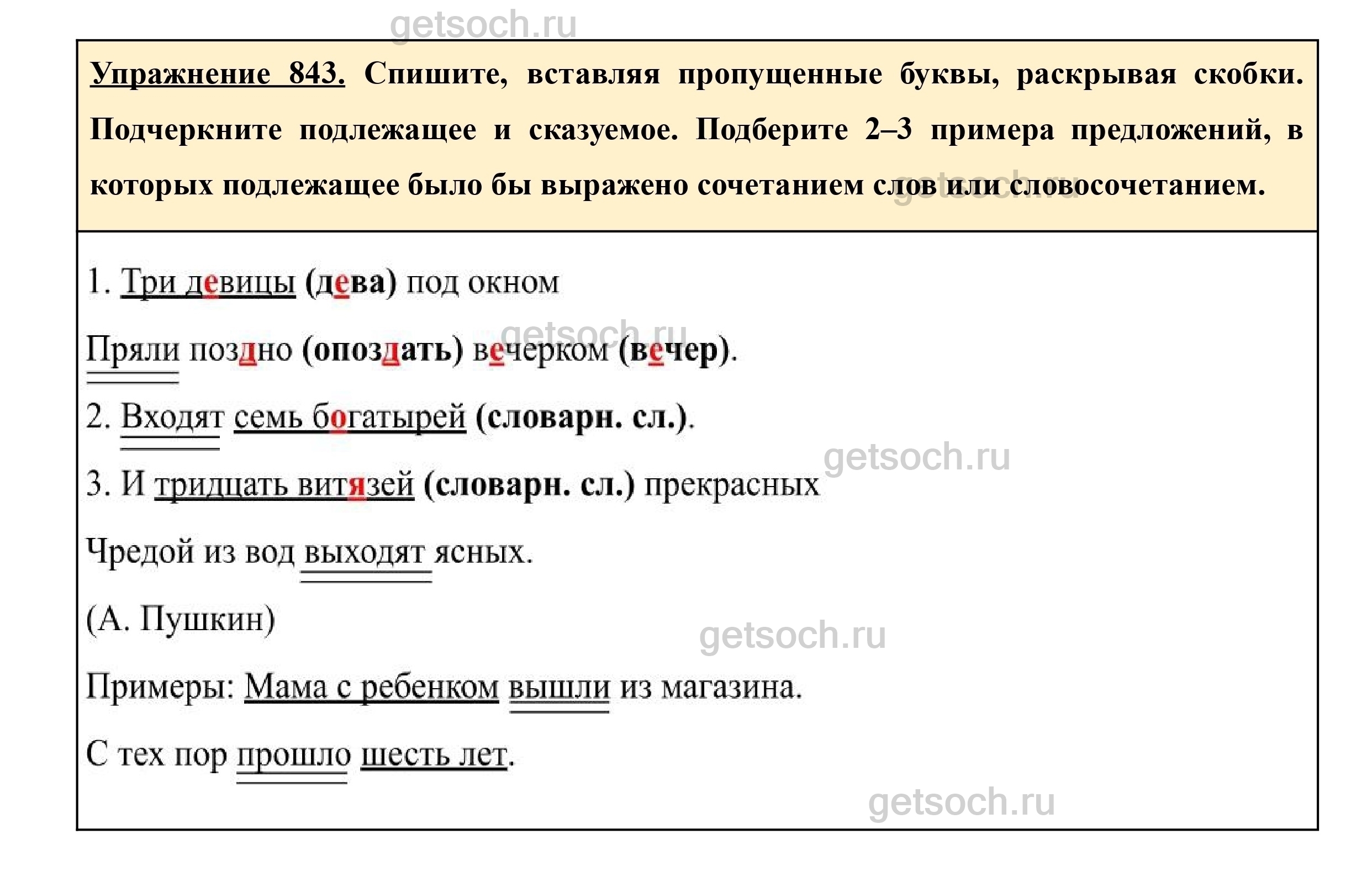 Рассмотрим ответы на Упражнение 843 из учебника по русскому языку для 5 класса Ладыженской
