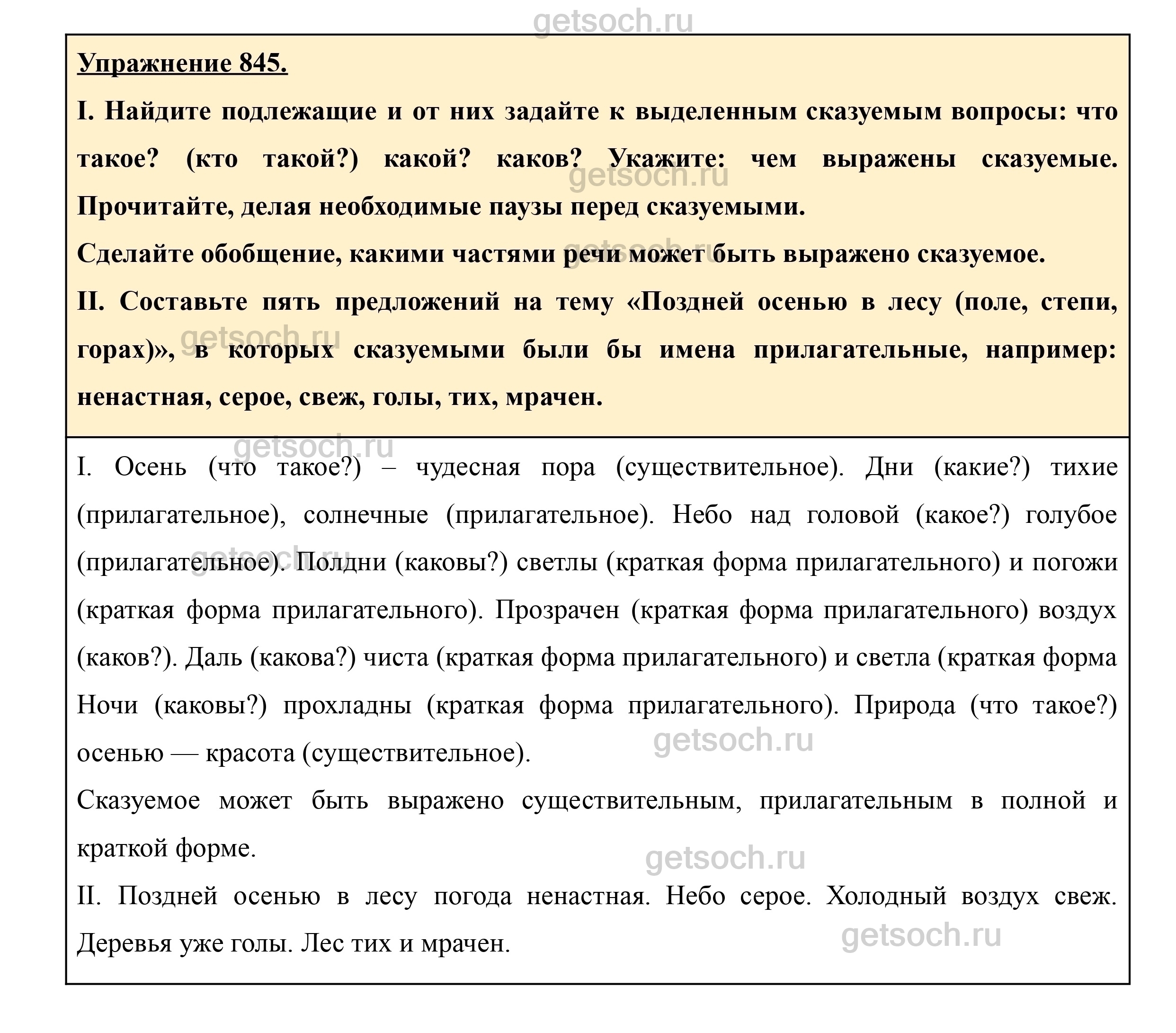 Рассмотрим ответы на Упражнение 845 из учебника по русскому языку для 5 класса Ладыженской