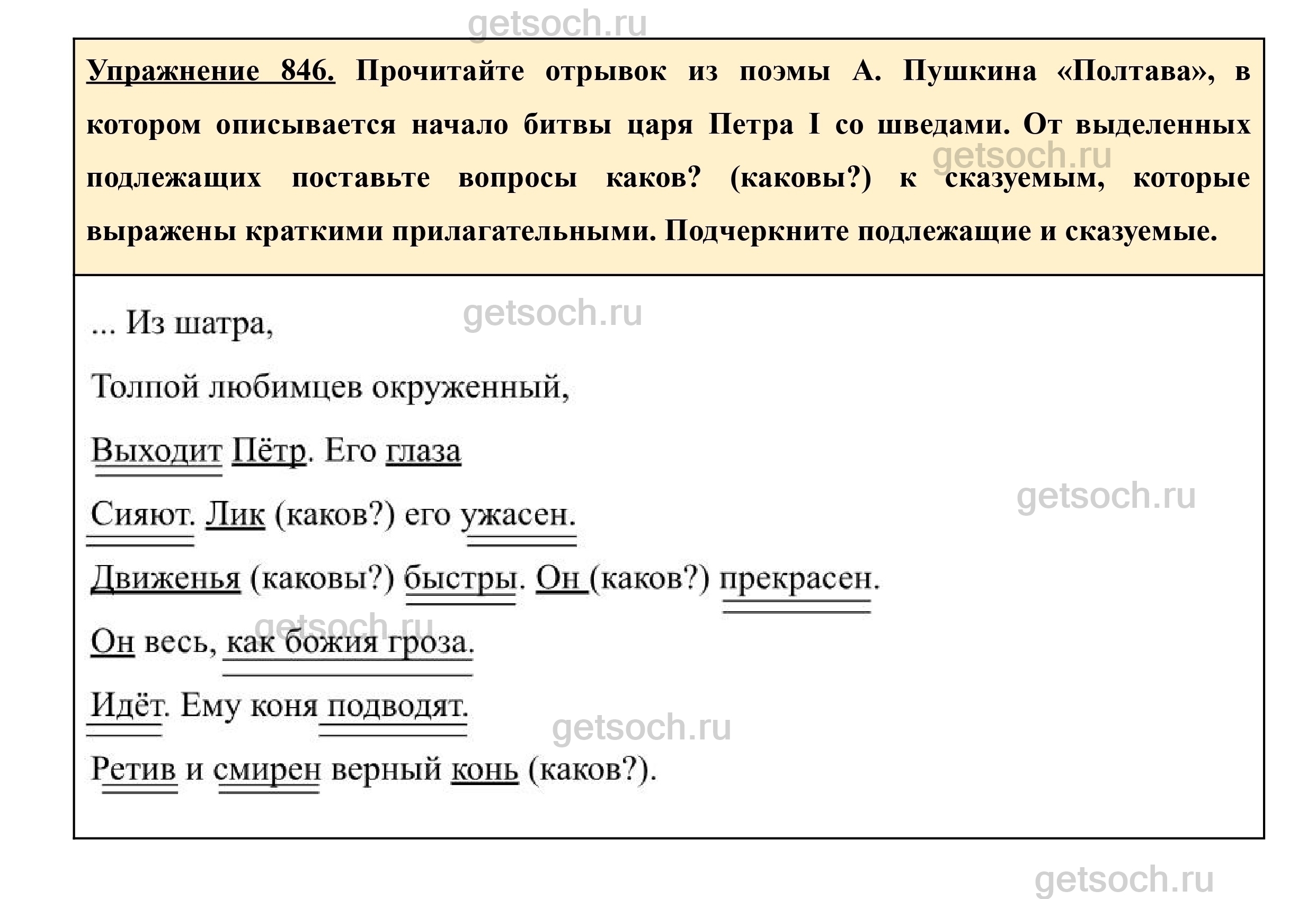 Рассмотрим ответы на Упражнение 846 из учебника по русскому языку для 5 класса Ладыженской