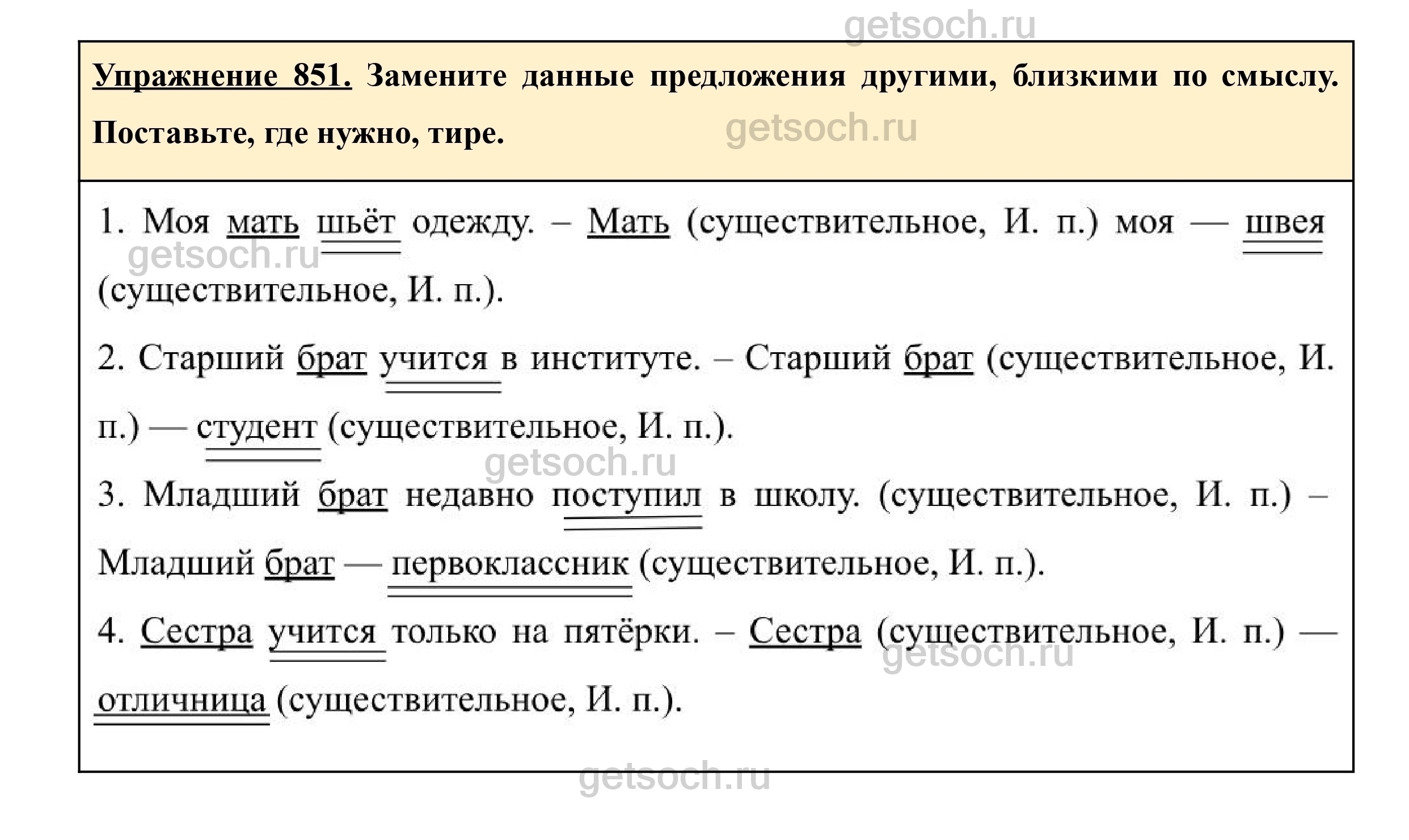 Рассмотрим ответы на Упражнение 851 из учебника по русскому языку для 5 класса Ладыженской