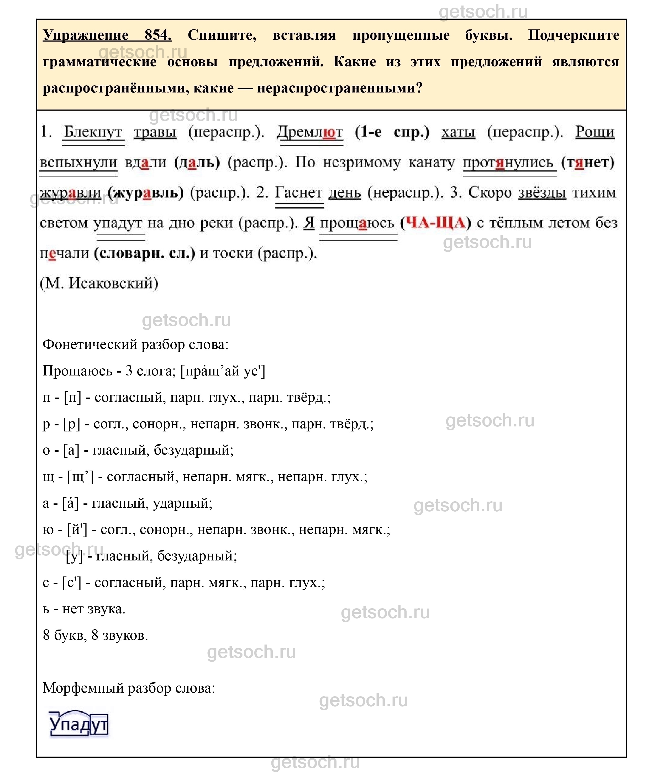 Рассмотрим ответы на Упражнение 854 из учебника по русскому языку для 5 класса Ладыженской