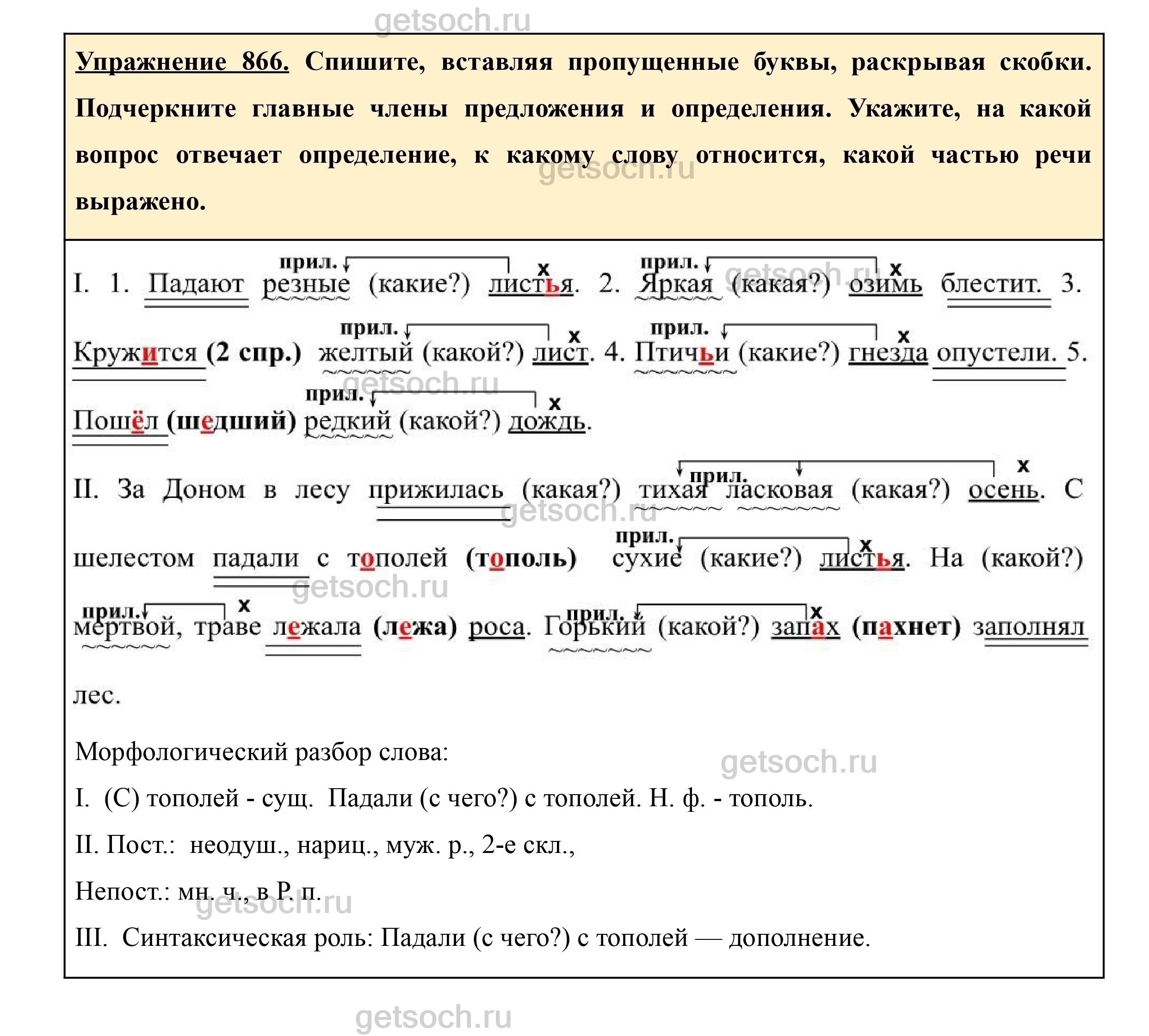 Рассмотрим ответы на Упражнение 866 из учебника по русскому языку для 5 класса Ладыженской