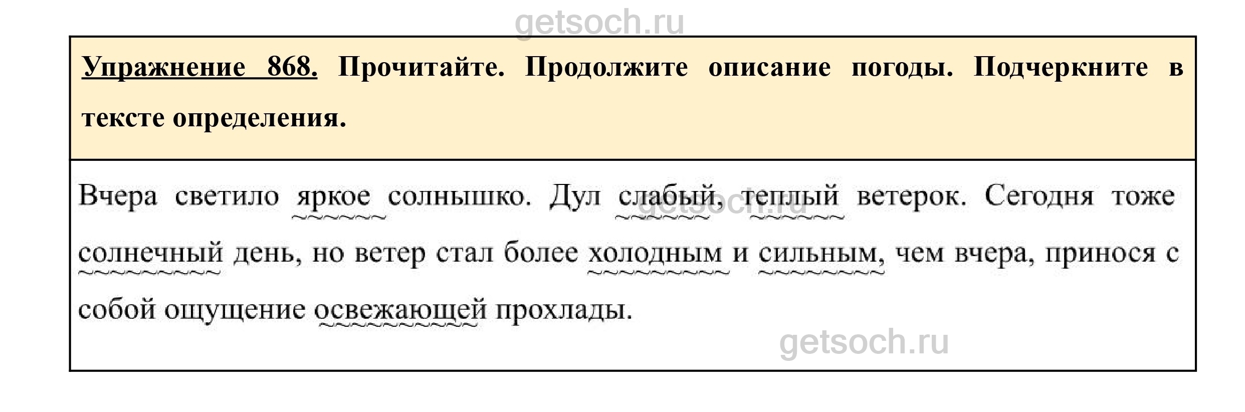 Рассмотрим ответы на Упражнение 868 из учебника по русскому языку для 5 класса Ладыженской